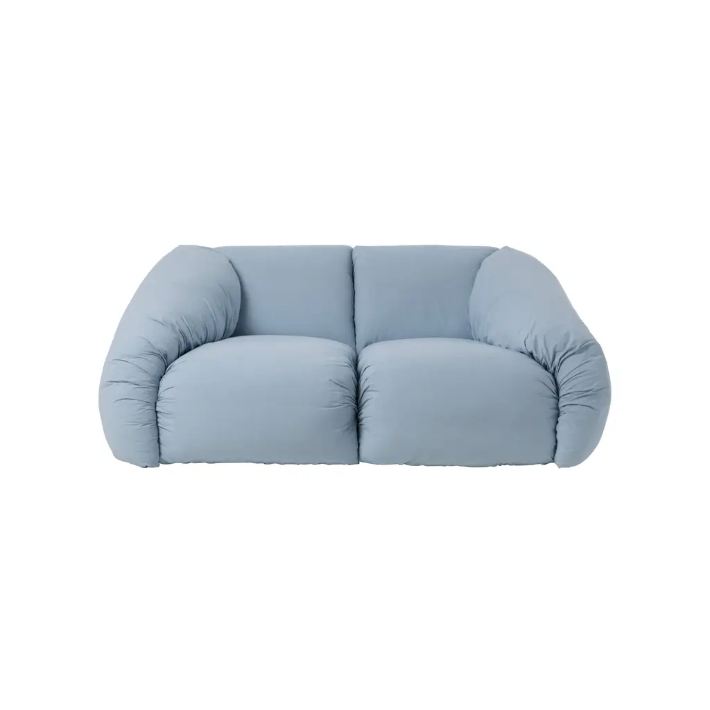 Puffer’s pillowy shape and downy comfort gets a 2-seater version in designer Philippe Malouin’s lineup suggested by the ubiquitous feather-filled jacket. Working closely with the product development team at SCP's specialist factory in Norfolk, England, he creates a sofa that is made up of joinable squishy pocket sections to envelop the sitter in sublimely soft comfort. Expanding the venerable craft of upholstery-making. it is constructed with 65% natural and sustainable materials including its FSC solid beech and plywood frame.