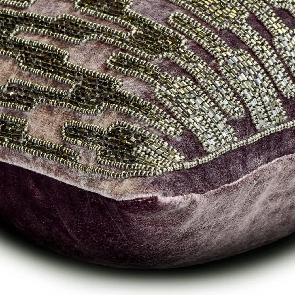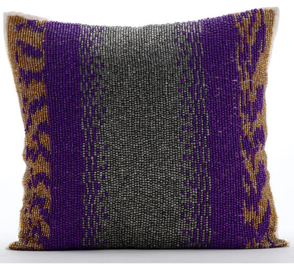 Purple Beaded 18"x18" Silk Decorative Pillows Covers For Couch, Metal Berry