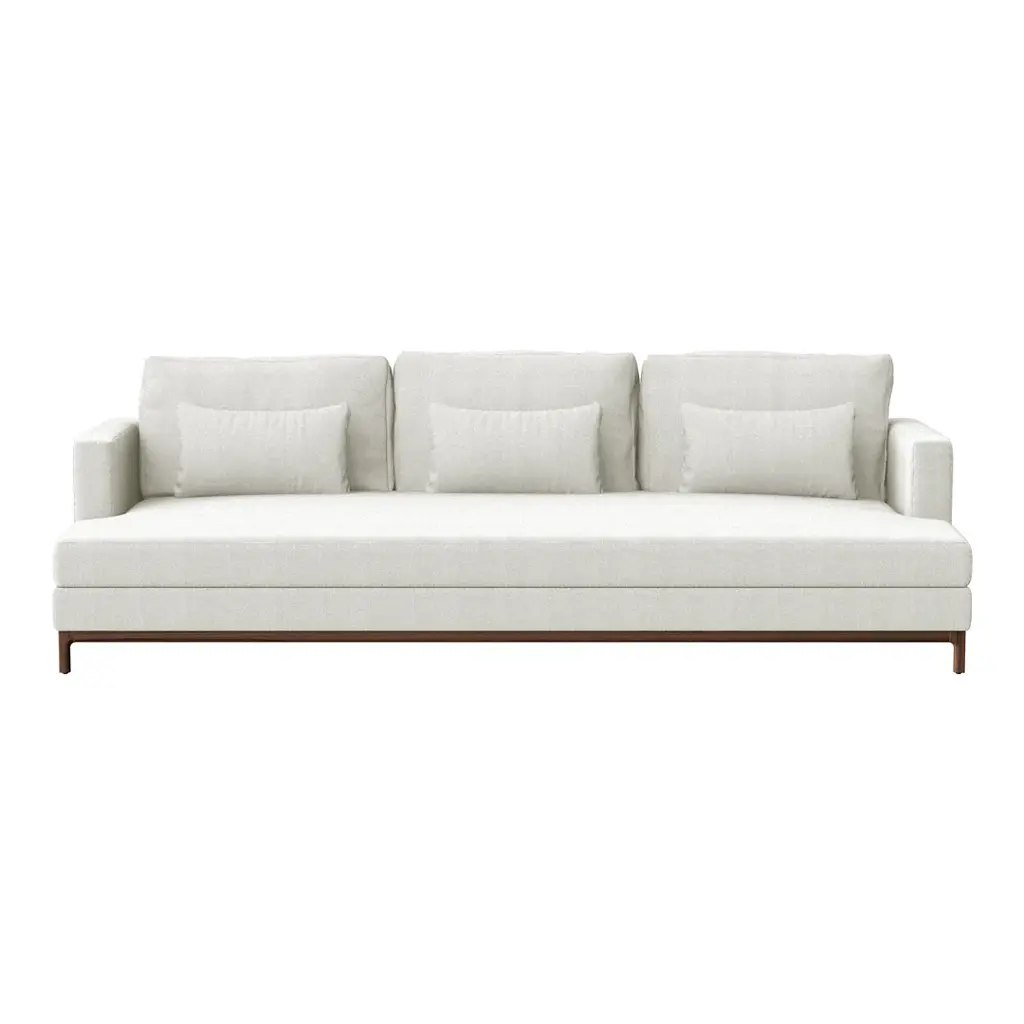 Named after the traditional Chinese concept of a "small sleep" at noon, the Qi Sofa draws inspiration from the Luohan Chuang - a dual - purpose bench for sitting and sleeping. Blending modern versatility with the minimal style of Jean-Michel Frank, it combines a wooden structural base with a padded platform and cushions for comfort in both seated and reclined positions. The collection comprises one , two , and three-seater sofas in wood with textile upholstery, suitable for diverse living spaces. Qi seamlessly infuses a subtle Asian aesthetic into contemporary contexts.
