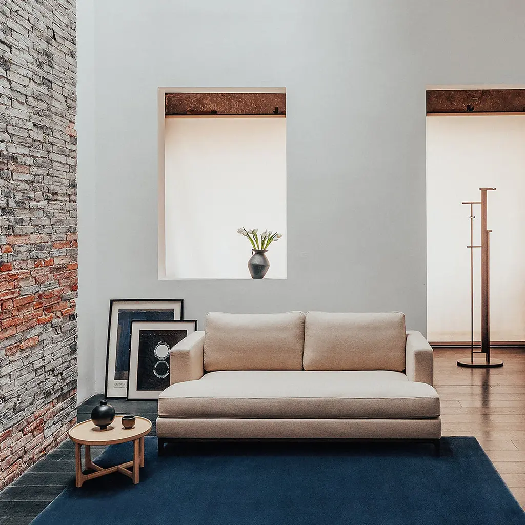 Named after the traditional Chinese concept of a "small sleep" at noon, the Qi Sofa draws inspiration from the Luohan Chuang - a dual - purpose bench for sitting and sleeping. Blending modern versatility with the minimal style of Jean-Michel Frank, it combines a wooden structural base with a padded platform and cushions for comfort in both seated and reclined positions. The collection comprises one , two, and three-seater sofas in wood with textile upholstery, suitable for diverse living spaces. Qi seamlessly infuses a subtle Asian aesthetic into contemporary contexts.