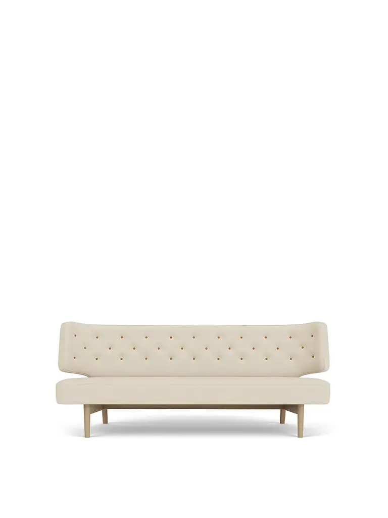 An exclusive and rare design from Vilhelm Lauritzen, the Radiohus Sofa was designed for Denmark’s Radio House – today the Royal Danish Academy of Music – in 1936. A pioneering piece of Nordic Functionalism, the elegant design shunned the conservative and straight lines of the time in favor of a more futuristic expression. Beautiful from all angles, its curved lines and open construction welcome and embrace the sitter, while the quilted back highlights the exactness of its design. A piece of furniture that requires space, let it stand freely in a room.