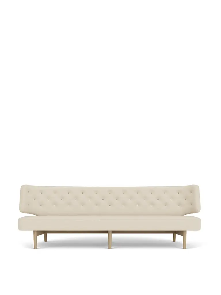 Designed in 1936 for the Danish Broadcasting Corporation’s Radiohuset, the Radiohus Sofa is one of Vilhem Lauritzen’s most important works. An icon of Danish Functionalism from the hand of one of Denmark’s most lauded architects, its elegant wooden frame holds a beautifully upholstered seat and back that are shaped to support the body as it sits.