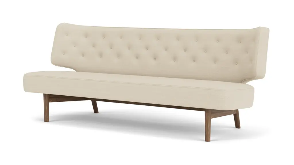 An exclusive and rare design from Vilhelm Lauritzen, the Radiohus Sofa was designed for Denmark’s Radio House – today the Royal Danish Academy of Music – in 1936. A pioneering piece of Nordic Functionalism, the elegant design shunned the conservative and straight lines of the time in favor of a more futuristic expression. Beautiful from all angles, its curved lines and open construction welcome and embrace the sitter, while the quilted back highlights the exactness of its design. A piece of furniture that requires space, let it stand freely in a room. Designed by Vilhelm Lauritzen for Audo Copenhagen North America.