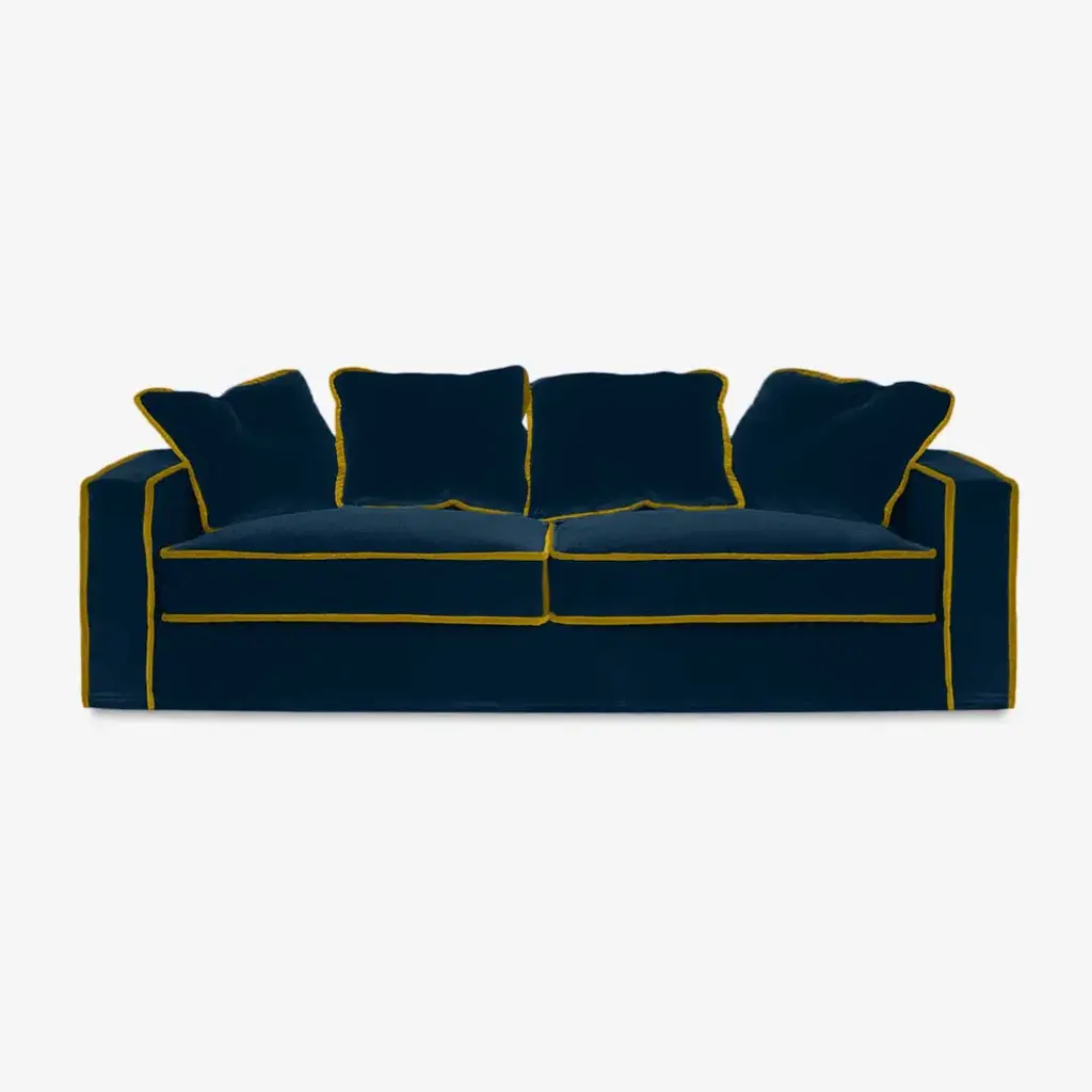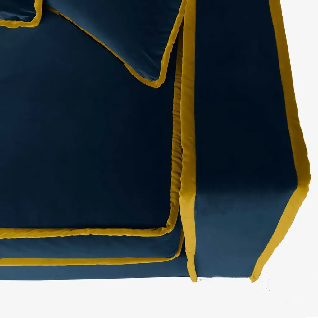 Rafaella Three-Seater Sofa In Navy Blue Velvet With Mustard Yellow Trim From Biosofa