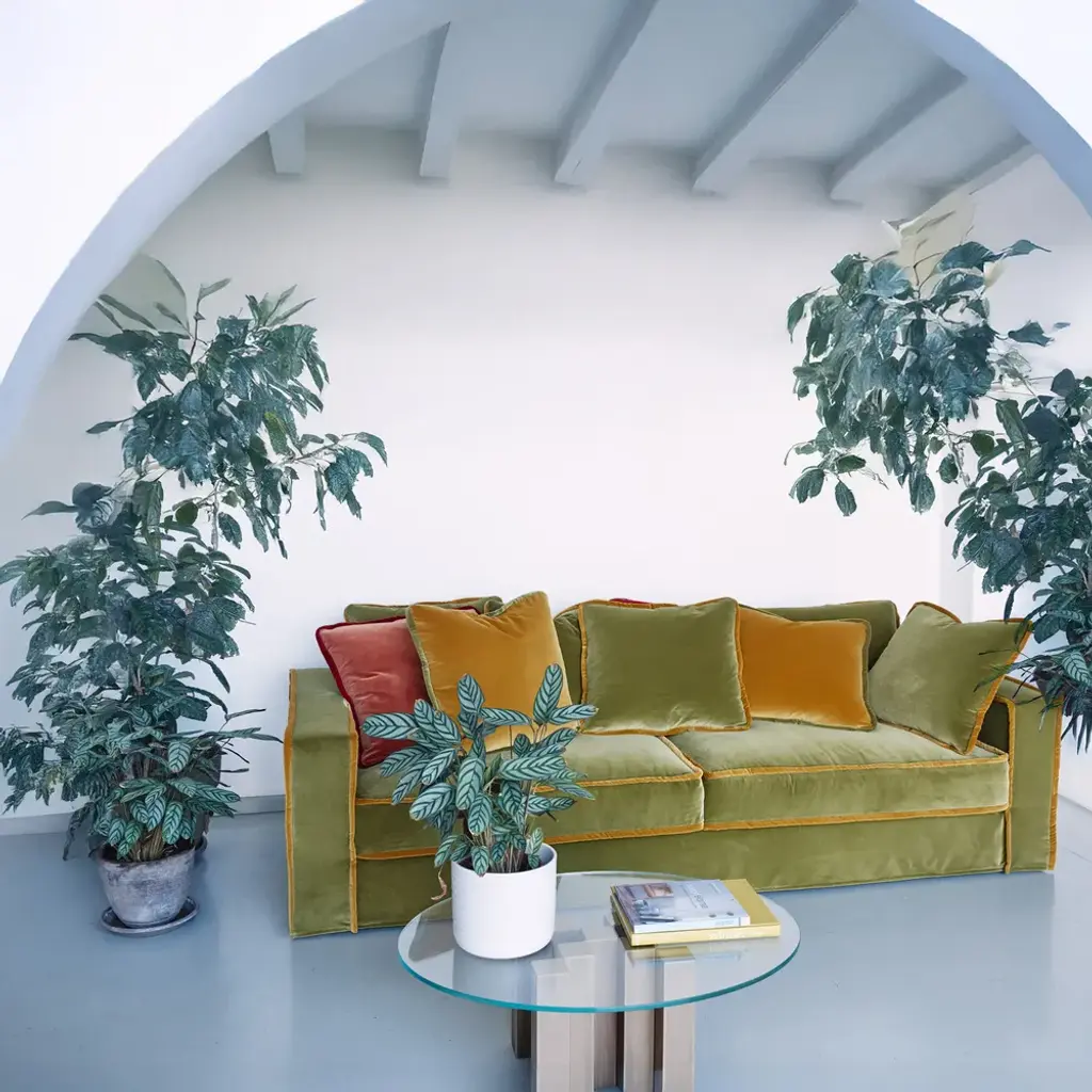 Smooth sophistication with the rafaella 3 seater sofa immerse yourself in the lap of luxury with our rafaella 3 seater sofa—a seamless blend of comfort and modern elegance. This generously sized sofa invites you to experience the sublime softness of its fabric, offering a touch that's both smooth and comforting. The deep seats ensure that sinking into relaxation becomes a true pleasure. rafaella's angular profile adds a contemporary twist to its revival style, while plush cushions contribute to a delightful contrast. Ideal for lounging on cozy evenings and extended weekends, rafaella promises to be a chic and inviting addition to your home. Customize your experience by choosing a contrasting trim, infusing modern lines and a vibrant splash of color into your living space. elevate your ambiance with the exquisite combination of smooth luxury and contemporary flair that rafaella effortlessly provides. materials internal frame: solid dried beech wood, jute belts with steel springs. padding: 100% natural latex, goose down layer, pressed cotton. finishing: choice of 100% natural cotton velvet, steel and cotton zippers, removable cover.