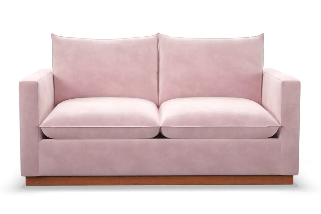 Rafaella Three-Seater Sofa In Pastel Pink Velvet With Camel Beige Trim From Biosofa