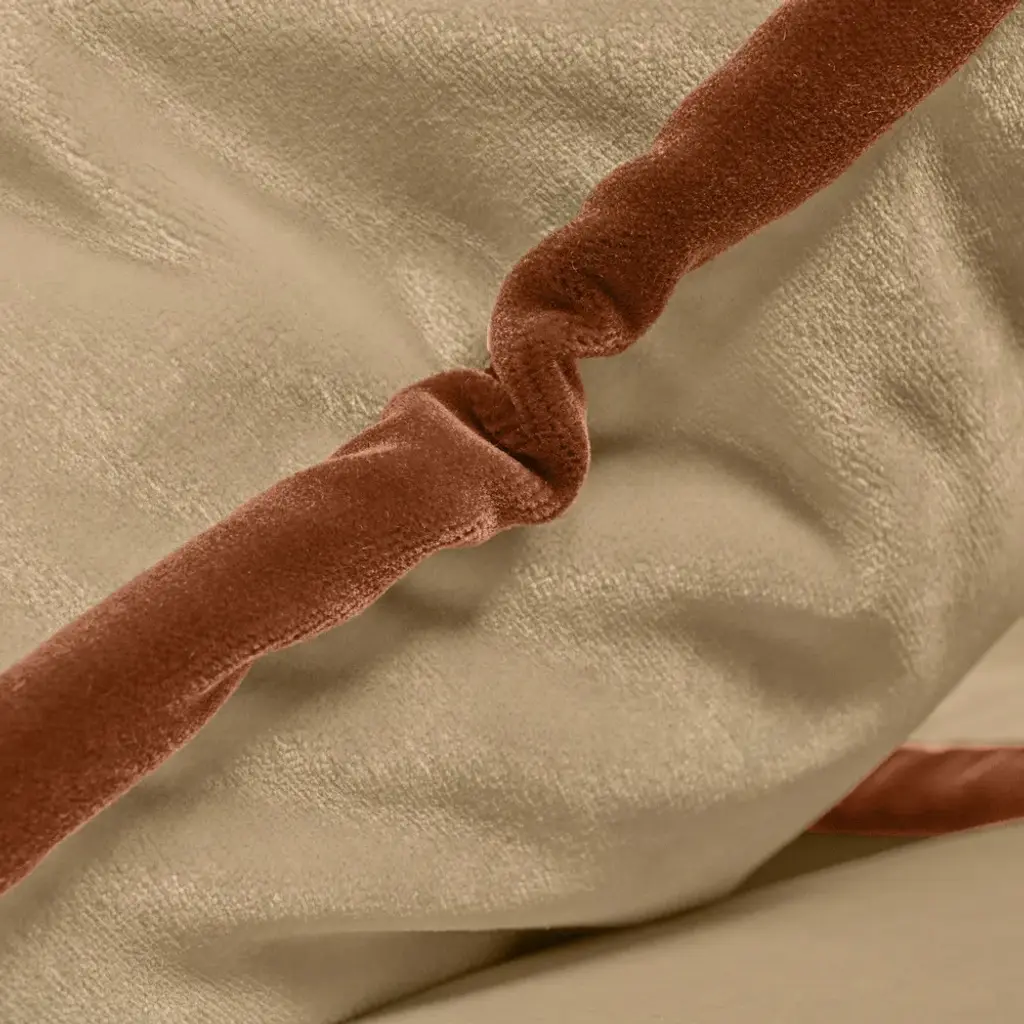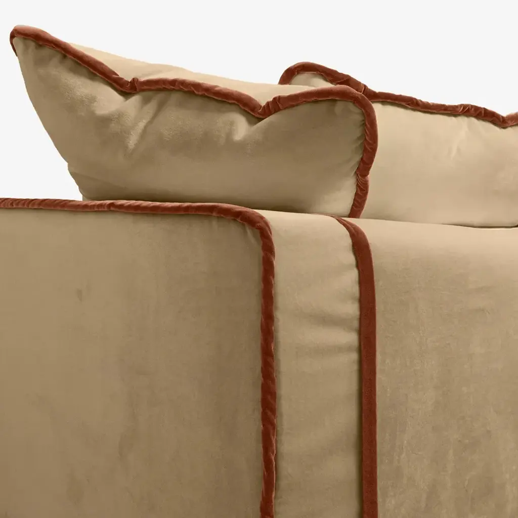 Rafaella Two-Seater Sofa In Camel Beige Velvet With Dark Orange Trim From Biosofa