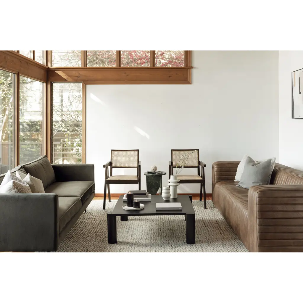 The Raphael Sofa's mid-century modern design and deep-set cushions make this the ideal sofa for long movie marathons. Perfect for smaller condo's and seating areas, Raphael's slim design allows it to accommodate three people comfortably. Lavish in texture, softness, depth and with tapered arms to give this design a clean-cut luxe look.