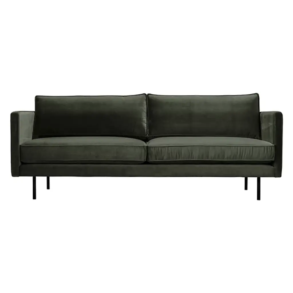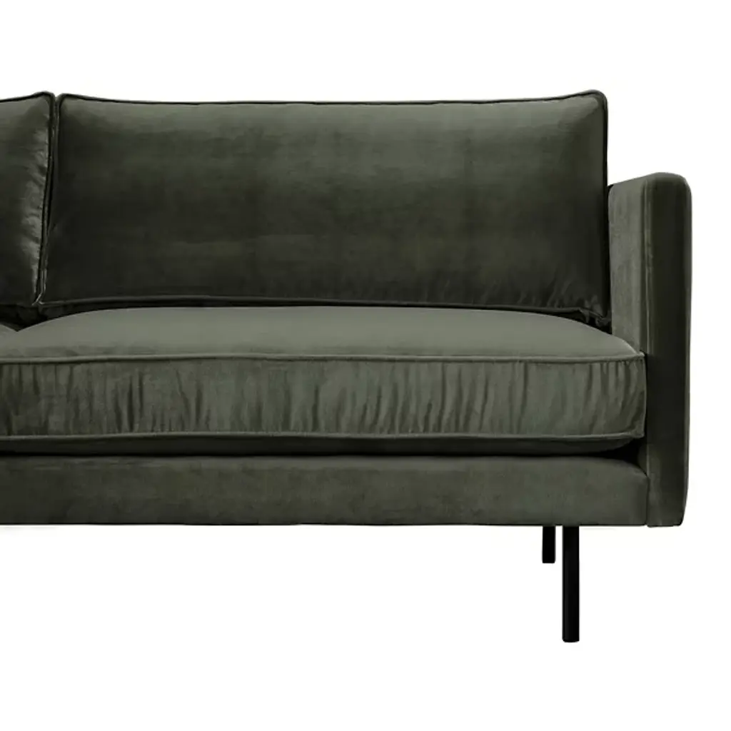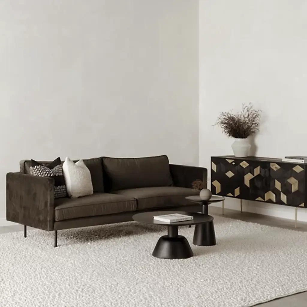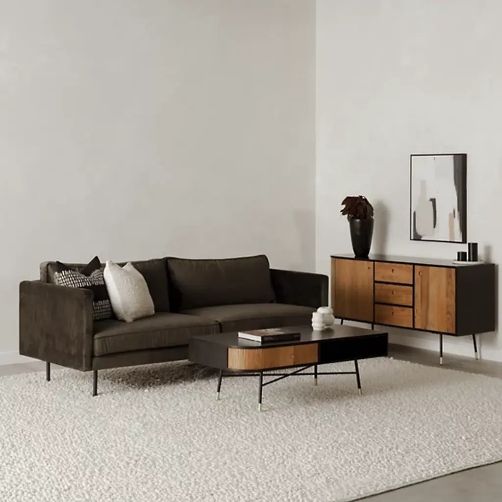 The Raphael Sofa from Moe's Home Collection matches contemporary simplicity with a mid-century modern retro design. Made in Vietnam and set atop a powder-coated steel frame, this sofa features deep-set cushions and tapered arms, offering a clean-cut luxe look. Its slim profile makes it an excellent choice for use in smaller seating areas, comfortably accommodating three people. The wood elements are sourced from responsibly managed forests and combine elegance, comfort, and sustainability.