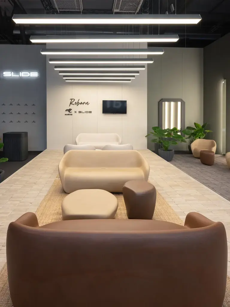 Born from the collaboration between Slide and ecoBirdy, Reborn Sofa is a couch with soft, enveloping lines, made from recycled plastic materials. Its welcoming structure can be complemented with cushions for customized comfort.Materials: PolyethyleneSlide and ecoBirdy combine creativity and sustainability in this exclusive Reborn collection that reimagines furniture with a forward-thinking approach. The sofa and armchair – both customizable with soft cushions – along with two tables, one low and wide, the other tall and slim, are made from recycled materials and designed to offer comfort and style in any setting.