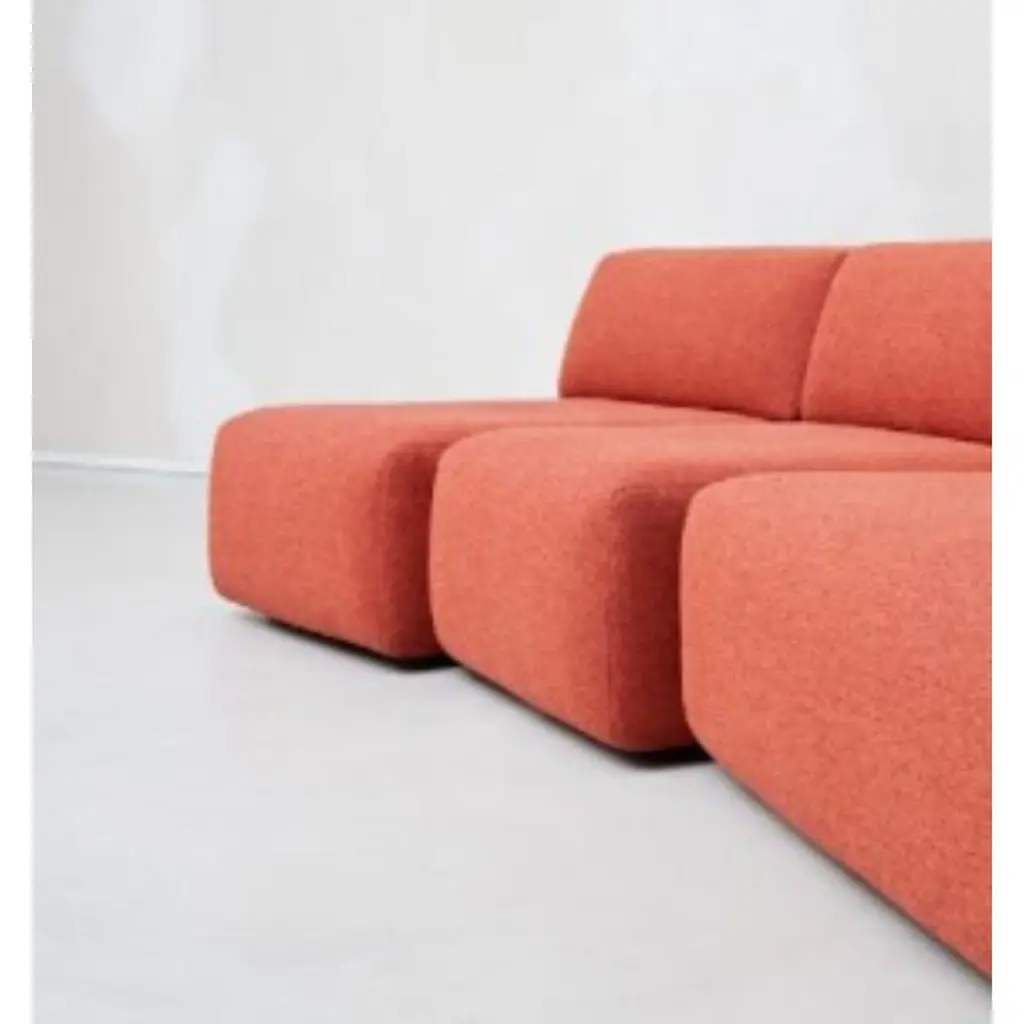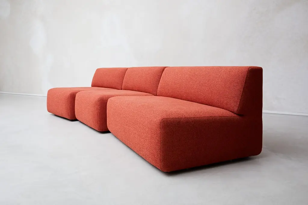Red couch by Marc DibehMaterials: FabricDimensions: W 290 x D90 x H65 cm Beirut based designer Marc Dibeh narrates his cultural environment through compelling interiors and products.His studio’s philosophy revolves around storytelling and how to make things timeless and simple.Dibeh’s universe is not far from planet earth but has the power to make you forget you’re in it. His methods are based on wit or sharpness of ideas. Sometimes both.