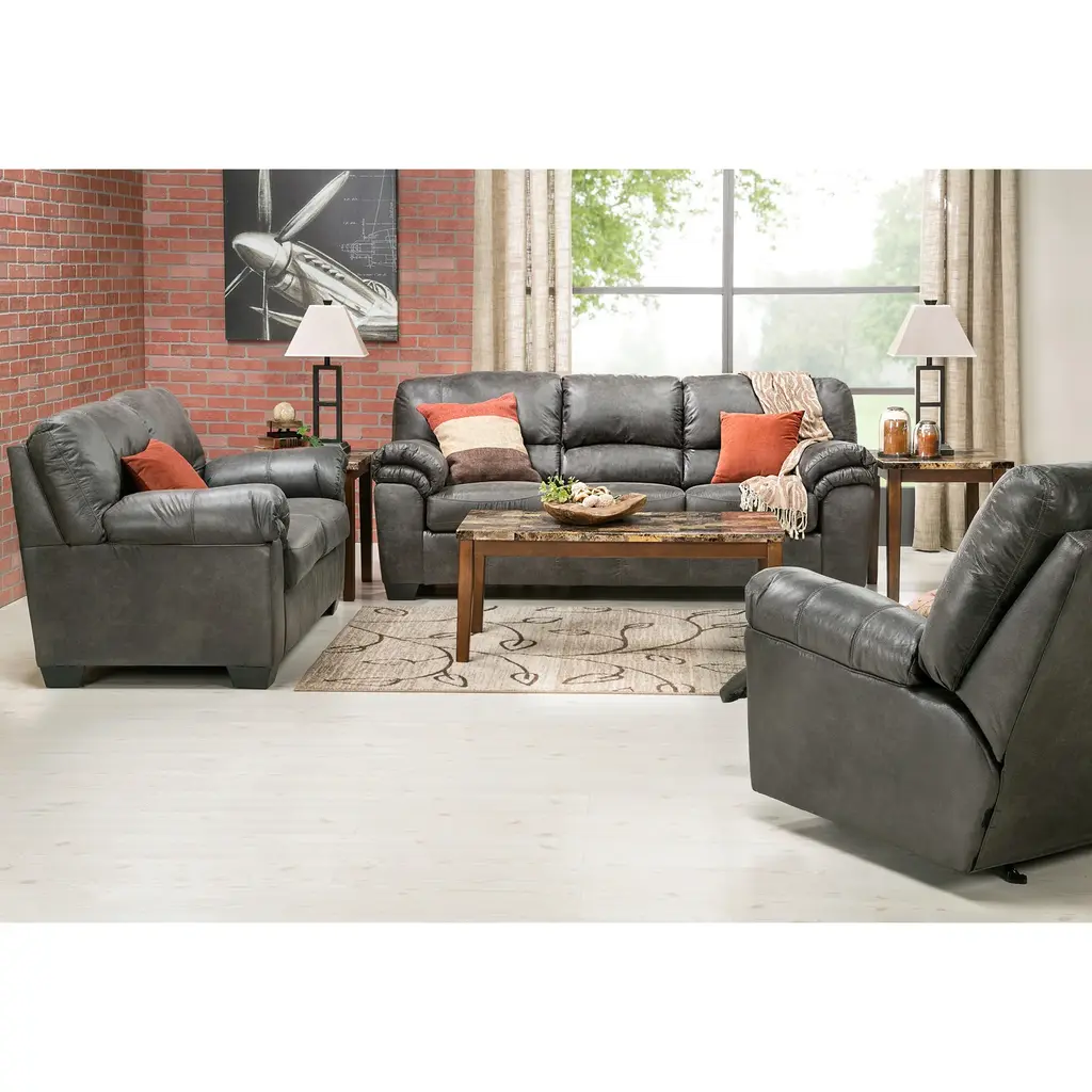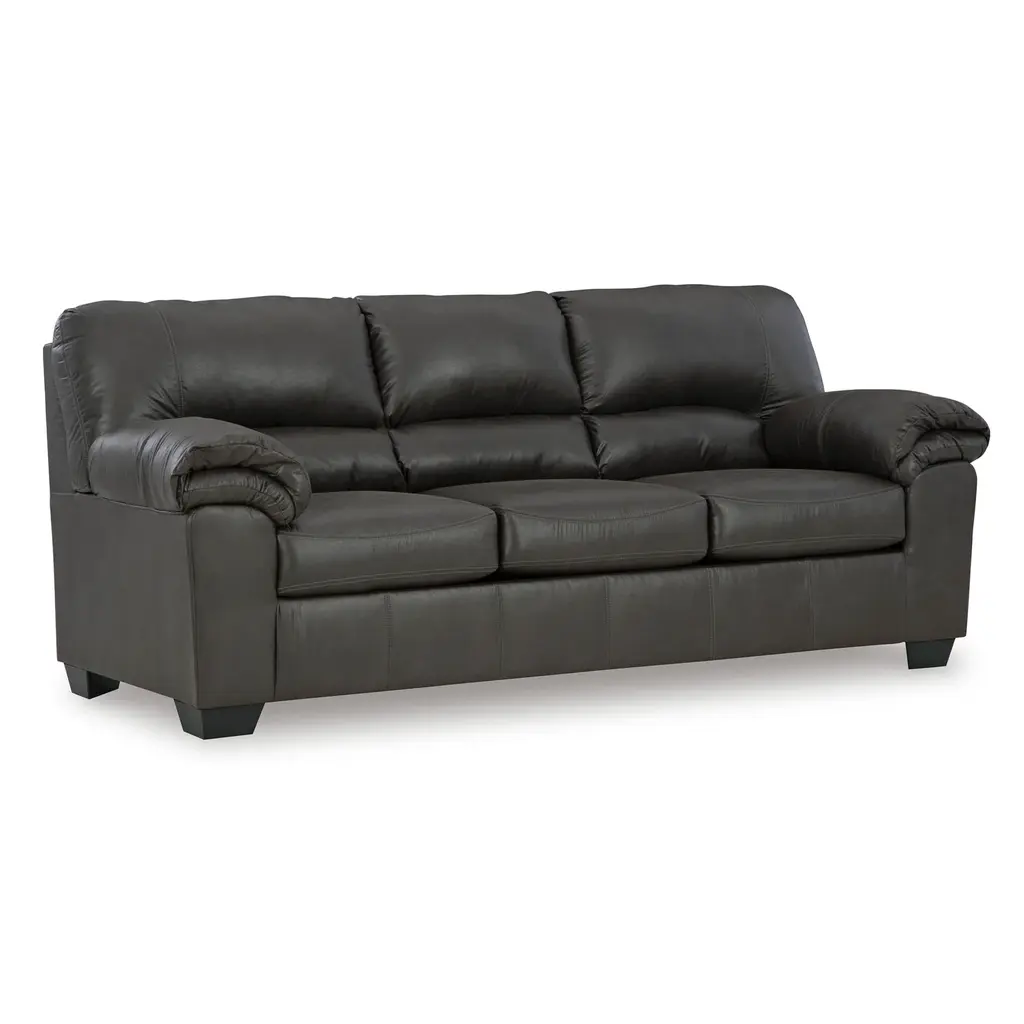 Experience the look and feel of leather without the high price tag. The Redmond sofa has a beautifully distressed leather look and an ultra-soft feel. The back and arms feature thick, high-resiliency foam cushioning for supreme comfort and support, and the frame is corner-blocked for stability and durability. This handsome sofa is a perfect choice for the family room or casual living room. The upholstery is easy-care polyester with a touch of polyurethane.