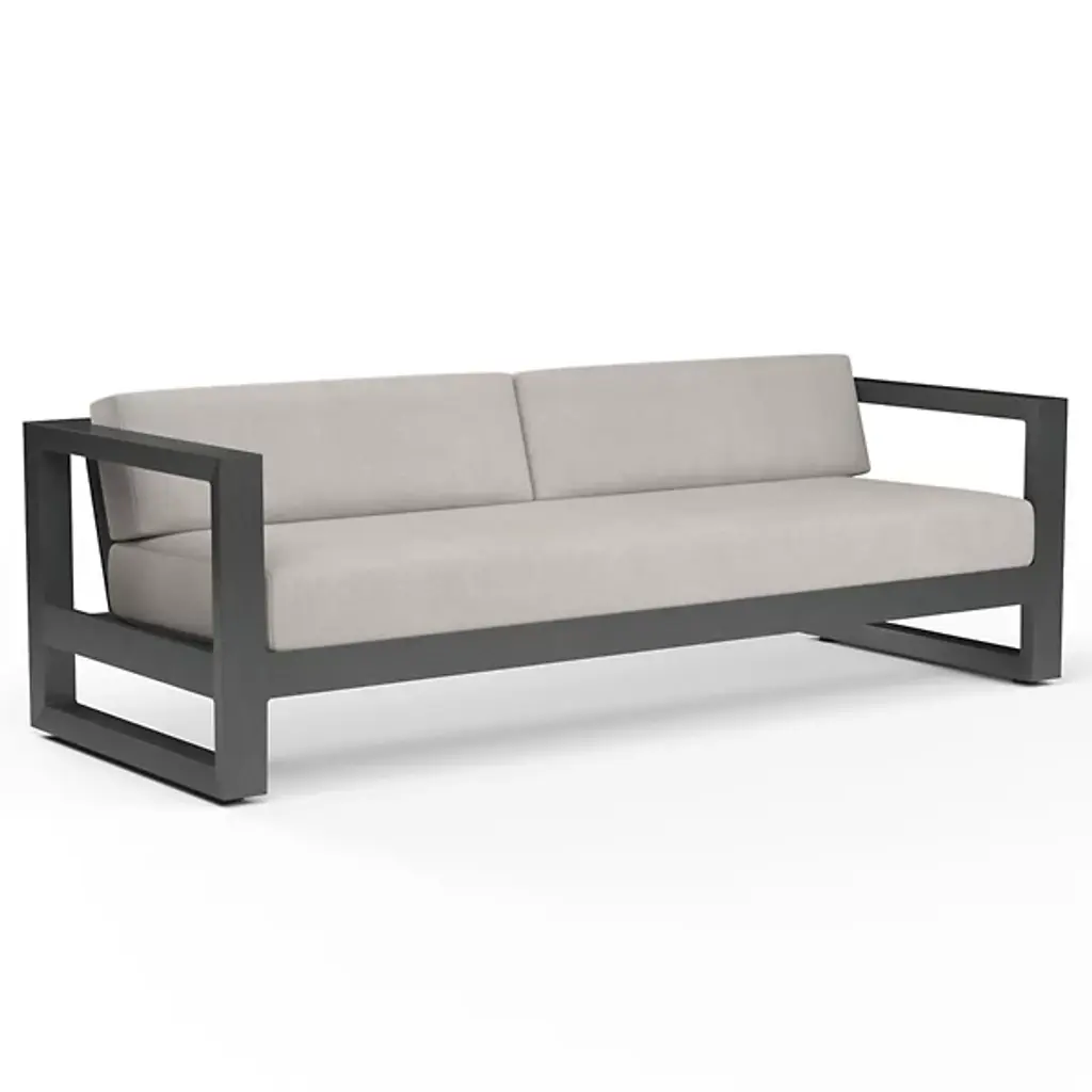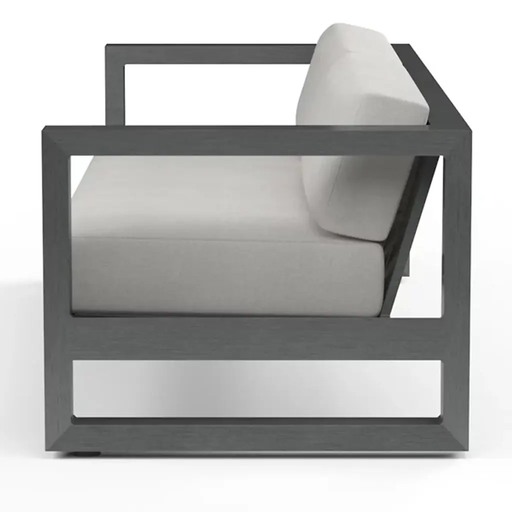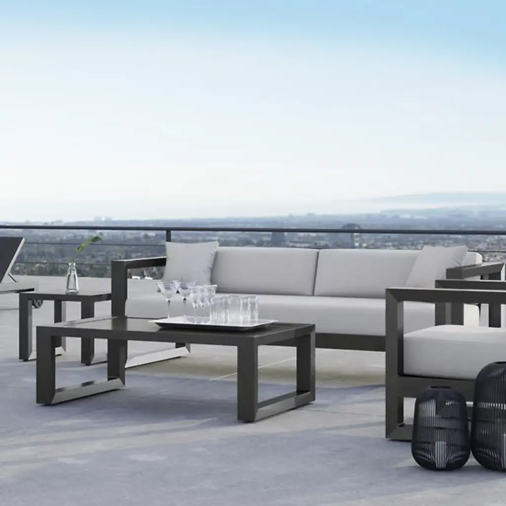 The Redondo Outdoor Sofa from Sunset West embraces mid-century minimalism through its deliberately low back and angular aluminum framework that forms bold rectangular shapes. The geometric structure establishes strong horizontal emphasis while generous cushioning softens the industrial-inspired construction. Its three-seat configuration accommodates family gatherings while maintaining the streamlined aesthetic that defines modernist outdoor furniture. This sofa anchors seating areas where retro-inspired design meets contemporary comfort needs, creating conversation spaces that celebrate both form and function.