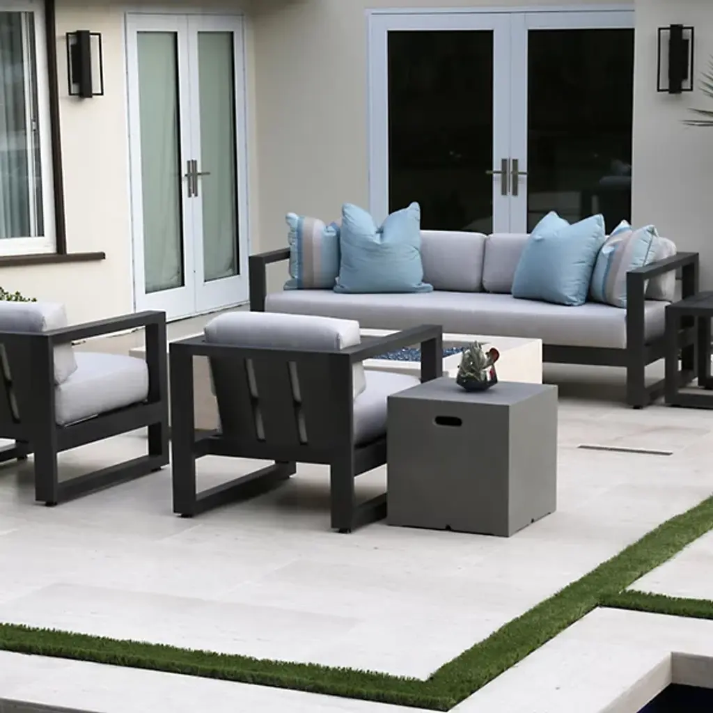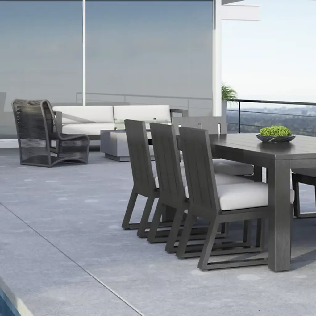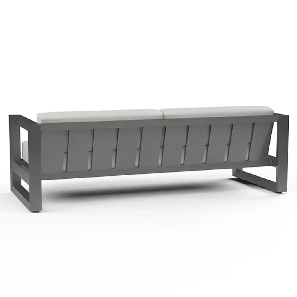 The Redondo Outdoor Sofa from Sunset West embraces mid-century minimalism through its deliberately low back and angular aluminum framework that forms bold rectangular shapes. The geometric structure establishes strong horizontal emphasis while generous cushioning softens the industrial-inspired construction. Its three-seat configuration accommodates family gatherings while maintaining the streamlined aesthetic that defines modernist outdoor furniture. This sofa anchors seating areas where retro-inspired design meets contemporary comfort needs, creating conversation spaces that celebrate both form and function.