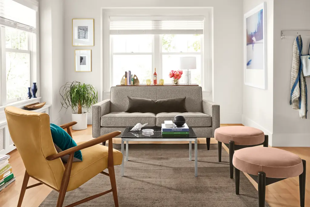 A small-scale sofa with sophisticated style, Reese adds refinement with details like button tufting, precise welting and tall, tapered legs. The shallow seat features structured cushions for supportive, upright sitting for people of all sizes.