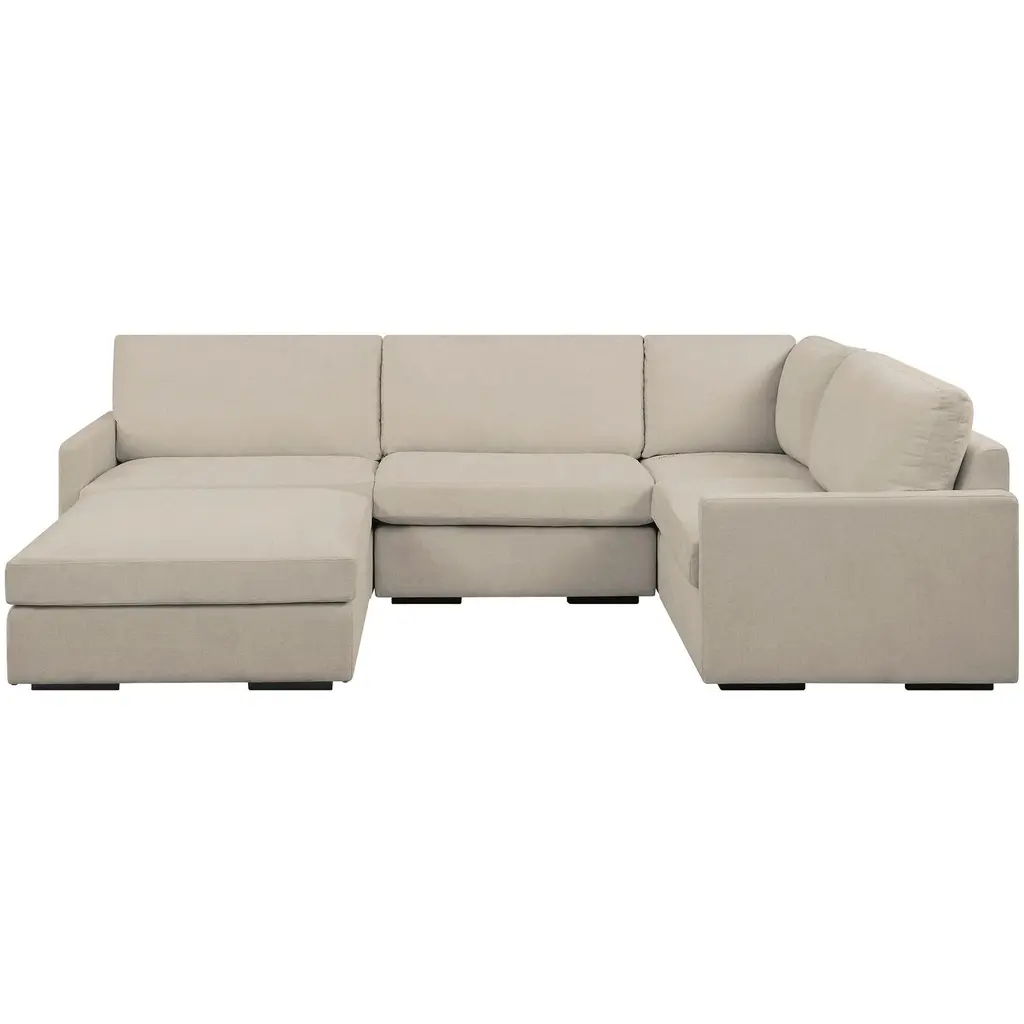 A Modern Silhouette That Offers Style And A Comfortable Place To Curl Up. The Refuge Modular Collection Is Crafted With Premium, High Durability Foam Cores And Synthetic Down Wrap. Featuring The Patented RidgEraser Technology To Ensure Consistent Comfort Between Cushions. Upholstered In A Velvety Textured, Cleanable, Recycled Polyester Fabric With Textured Details In Light Sand. Seat Height Is 20".