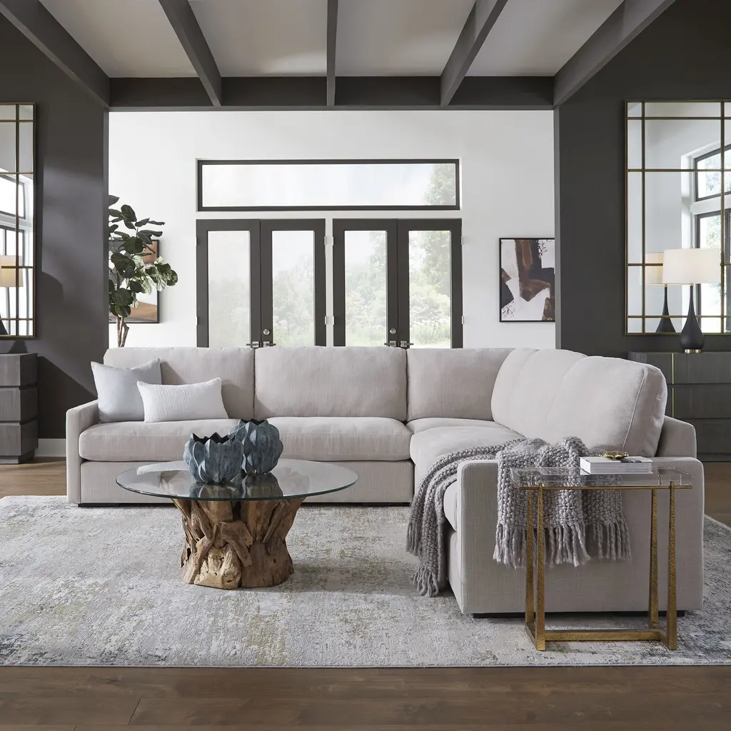 Refuge Light Sand Polyester Sofa, Right Arm Facing