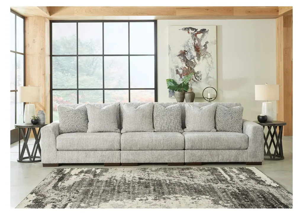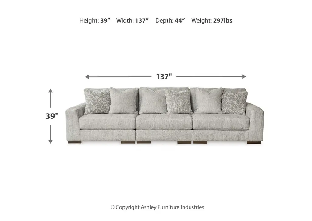 Sit back and enjoy the velvety softness of the Regent Park sectional. Its contemporary design is accentuated by a subtle chevron pattern that masters the art of smart and sophisticated style. Weight 297.000 lbs. (133.65kgs.)
