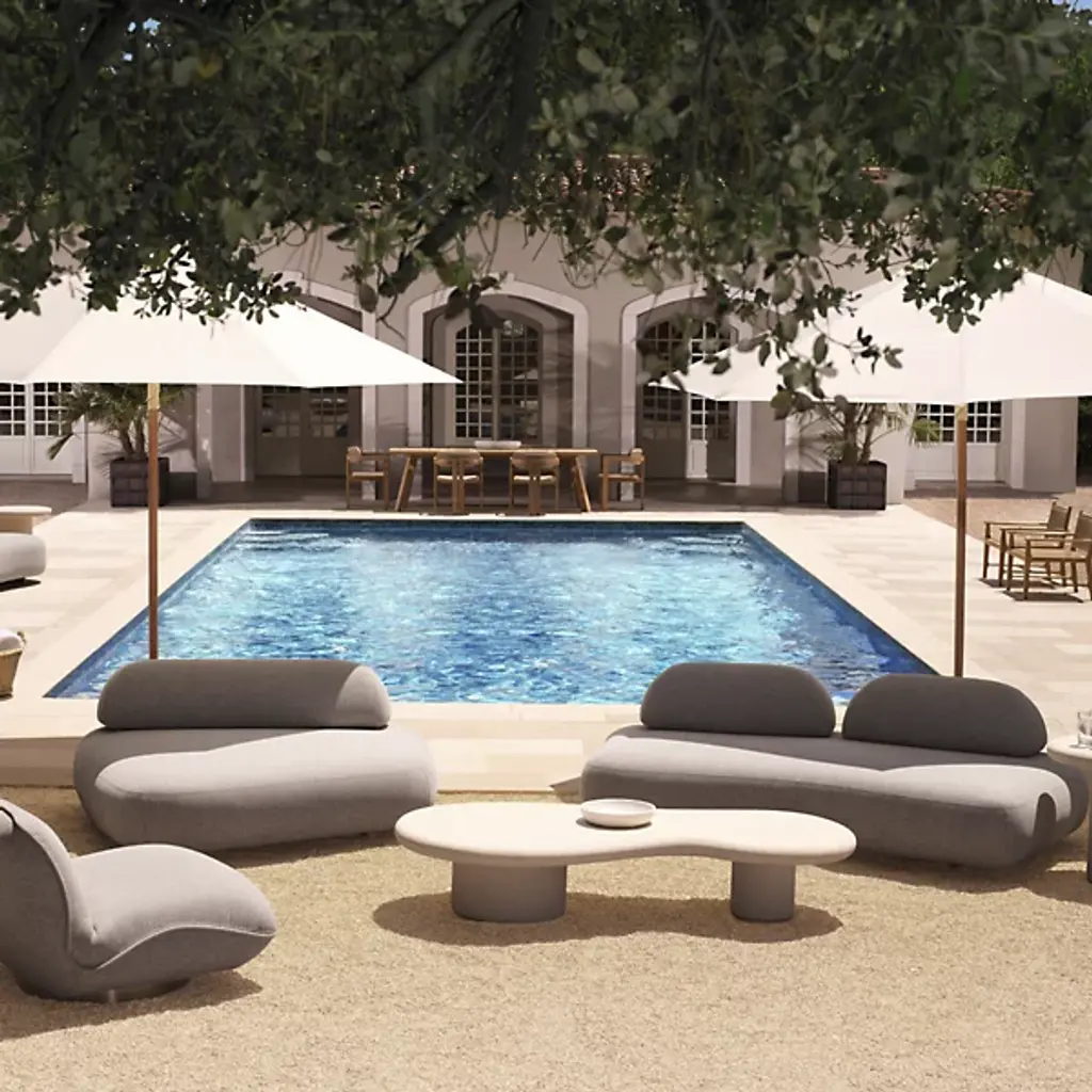 The Residenza Outdoor Sofa from Eicholtz offers luxury and versatility for your outdoor space, upholstered in durable Mauritius light grey fabric that is both waterproof and water-repellent. Supported by sturdy #304-grade stainless steel legs with a sleek black powder coating, this sofa’s design includes two separate sections with moveable backrests for customizable seating arrangements. Complete with protective covers for added durability, it combines elegance and practicality, making it a perfect choice for stylish outdoor lounging.