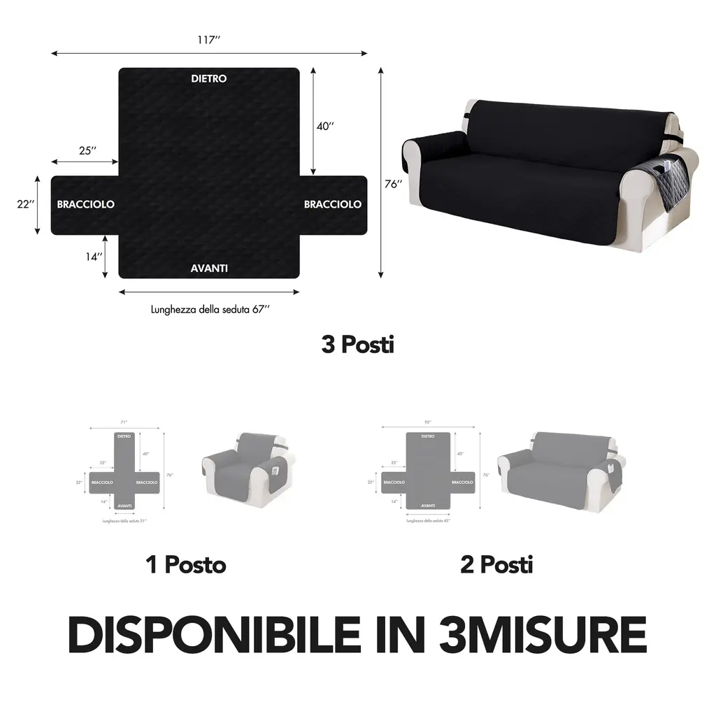 Reversible Sofa Slipcover Protector With Diamond Design For Pets - Black