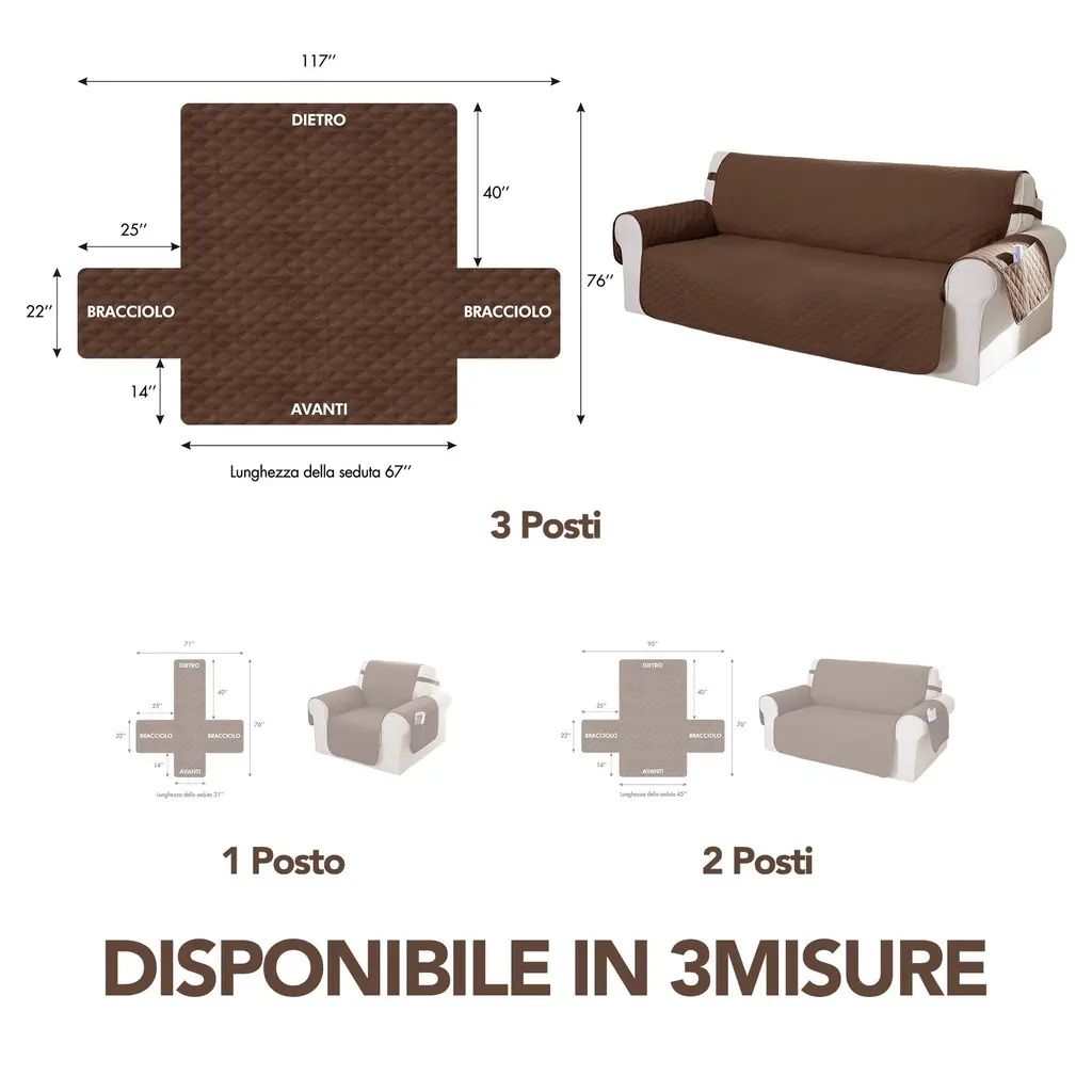 Reversible Sofa Slipcover Protector With Diamond Design For Pets - Brown