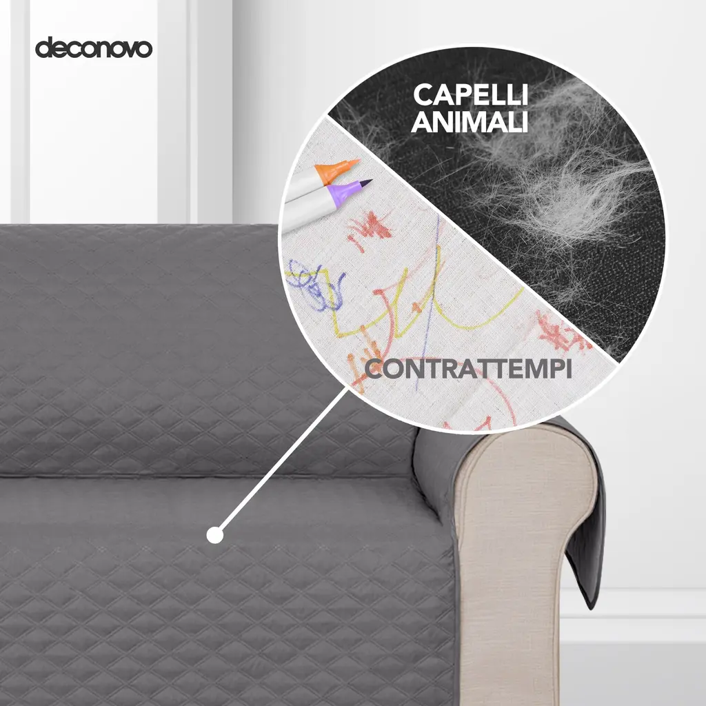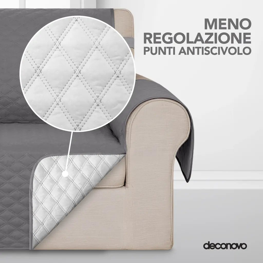 Transform your living space with the Deconovo Reversible Sofa Slipcover, designed for both style and practicality. Made from 100% premium polyester, this quilted sofa protector features a durable three-layer construction that provides ultimate comfort and long-lasting protection for your furniture. The elegant diamond-shaped rhombus pattern adds sophistication to your home, while the reversible design gives you two stylish options in one. Perfect for homes with pets or kids, this slipcover is water and spill-resistant, safeguarding your sofa from messes and stains. The non-slip backing, equipped with silicone rubber dots, ensures a secure fit even with active pets or children. Wide side pockets offer convenient storage for remotes, magazines, or toys, while the included foam strips and straps keep the slipcover in place. Key Features: Important Notes: Installation Guide: