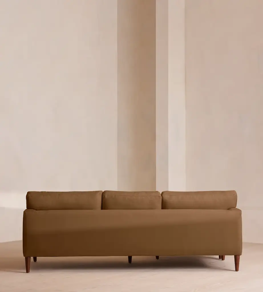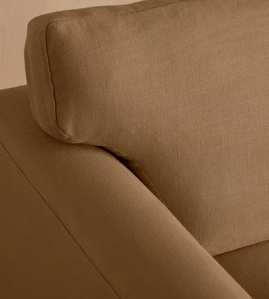 Our Reya sofa's soft, cushioned profile invites you to sink into its comforting curves with only relaxation in mind. The mid-century design takes inspiration from similar interiors seen throughout DUMBO House, with linen upholstery. Turned walnut legs lift this sofa off the floor to create the illusion of more space with an adjustable chaise end that can be adapted to suit your arrangement, for stretching out or socialising.