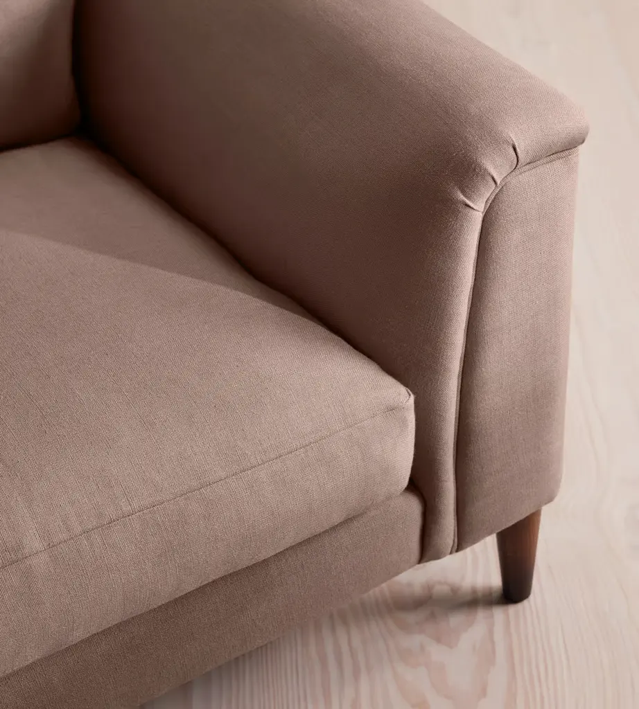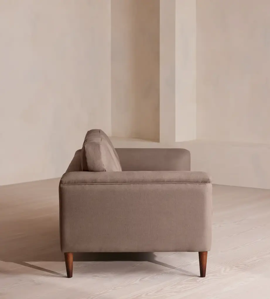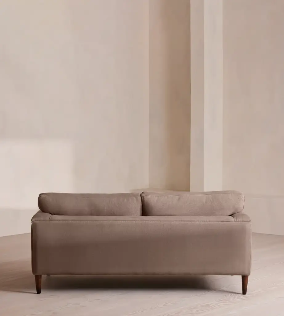 Our Reya sofa invites you to sink into its comfortable, cushioned curves for only relaxing moments in mind. The mid-century design takes inspiration from similar interiors seen throughout DUMBO House, with linen upholstery and turned walnut legs that lift this sofa off the floor creating the illusion of more space. Pair with our Reya ottoman and loveseat for the full look.