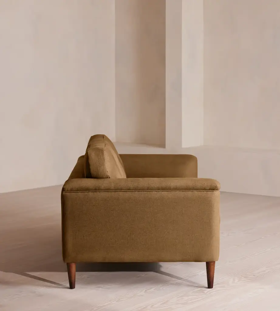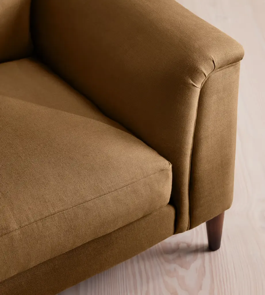 Our Reya sofa invites you to sink into its comfortable, cushioned curves for only relaxing moments in mind. The mid-century design takes inspiration from similar interiors seen throughout DUMBO House, with linen upholstery and turned walnut legs that lift this sofa off the floor creating the illusion of more space. Pair with our Reya ottoman and loveseat for the full look.