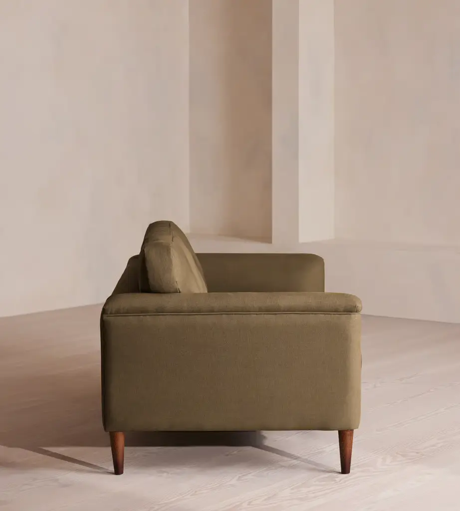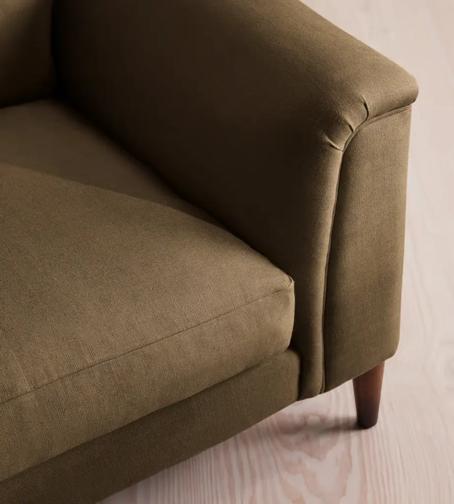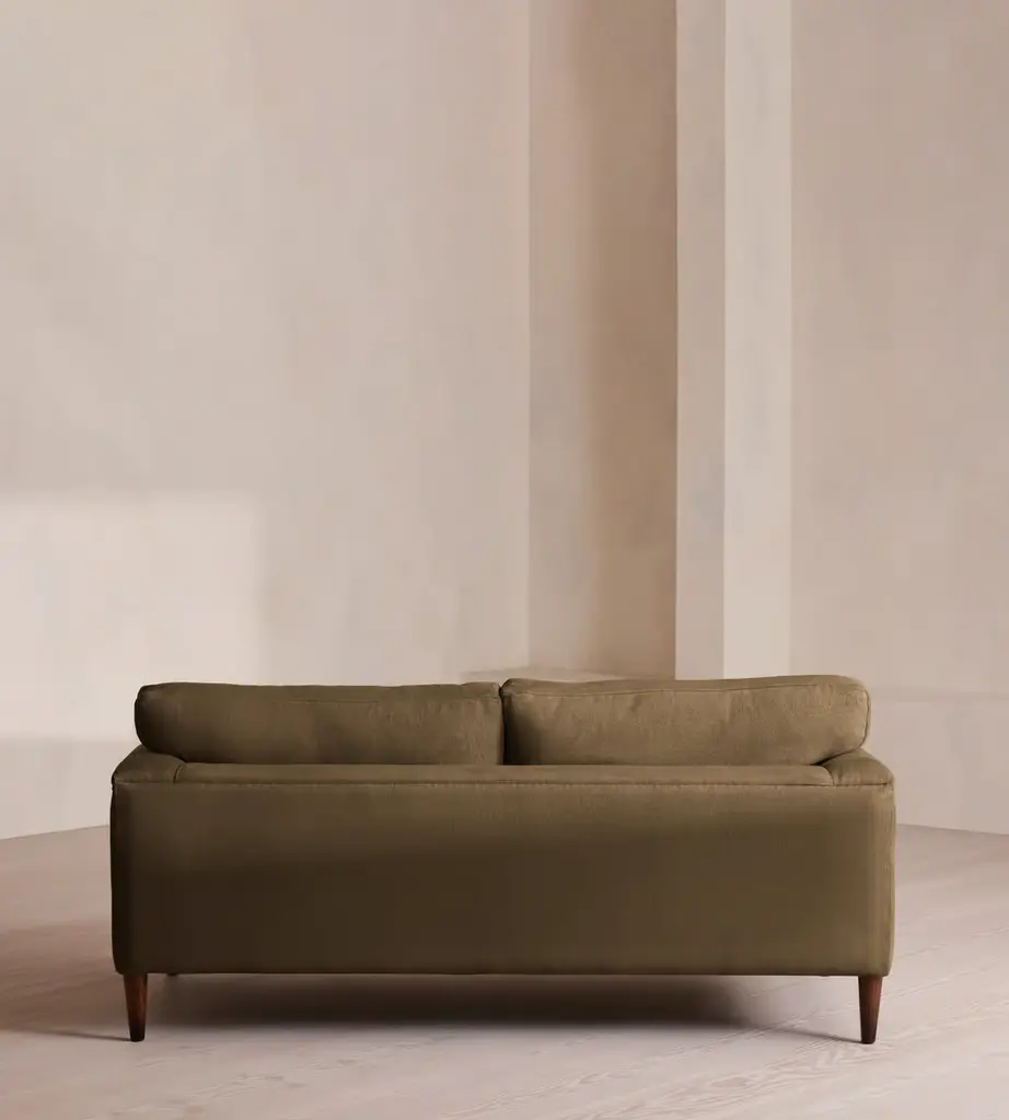 Our Reya sofa invites you to sink into its comfortable, cushioned curves for only relaxing moments in mind. The mid-century design takes inspiration from similar interiors seen throughout DUMBO House, with linen upholstery and turned walnut legs that lift this sofa off the floor creating the illusion of more space. Pair with our Reya ottoman and loveseat for the full look.