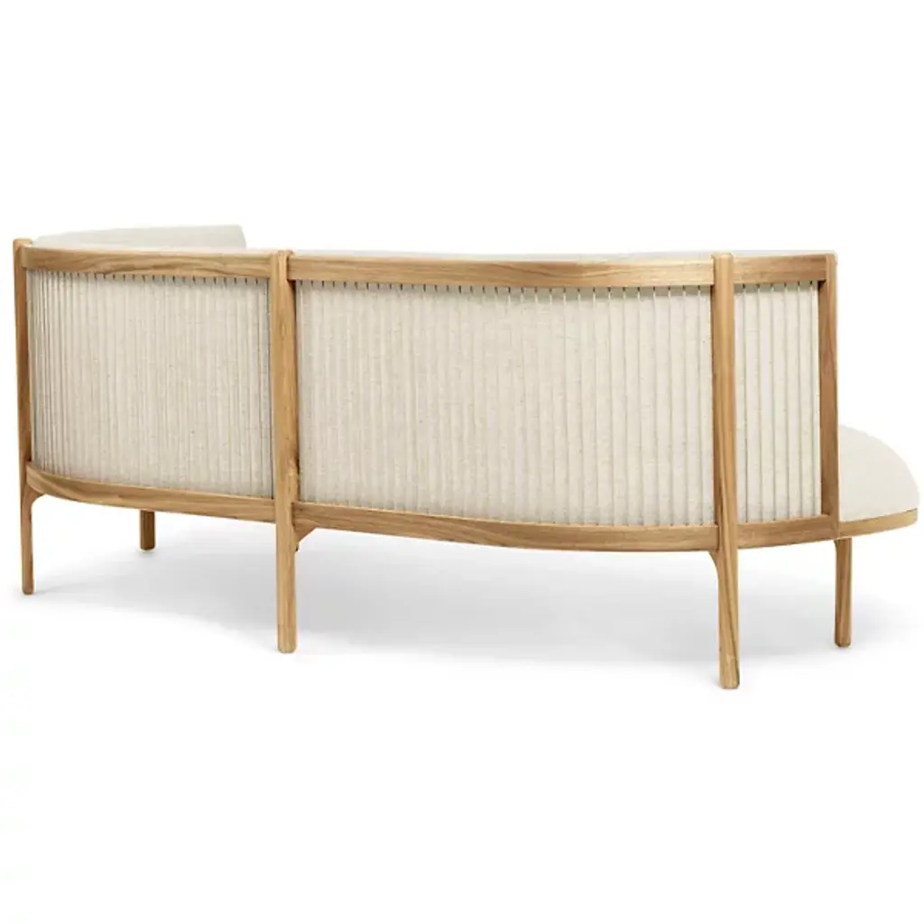 The award-winning RF1903 Sideways Sofa from Carl Hansen helps one break the ice and break the strict architectural lines of the room with a cozy, asymmetrical design. Creator Rikke Frost’s work sees classic materials imagined into functional modern designs. Frost starts with a foundation of wood that curves around for a prominent armrest on one side. The deep grain texture and solid feeling of wood accentuate the airy, delightful paper cord fitted to it. The upholstered cushioning produces thoughtful curves that invite one to gather around and enjoy a long conversation. The cushioning offers a soft yet firm feel that offers plenty of support.