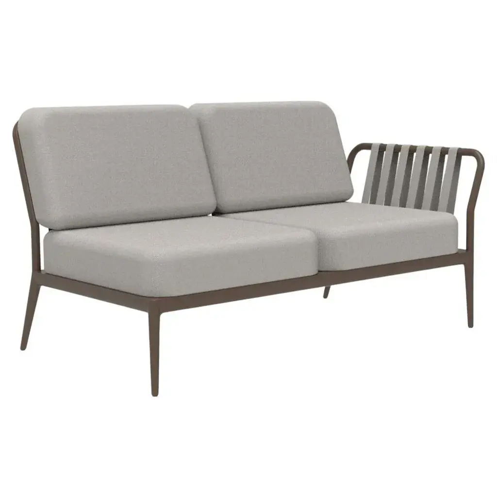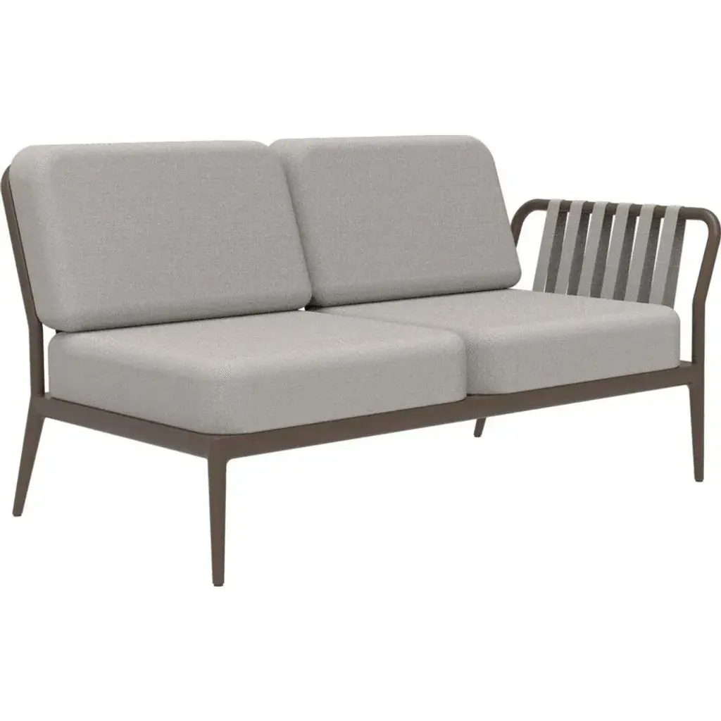 Ribbons bronze double left modular sofa by mowee dimensions: d83 x w148 x h81 cm (seat height 42 cm). Material: aluminium and upholstery. Weight: 29 kg an unmistakable collection for its beauty and robustness. A tribute to the valencian manufacturing tradition as a challenge to innovation, making it sustainable and durable. A collection with details that make it unique.