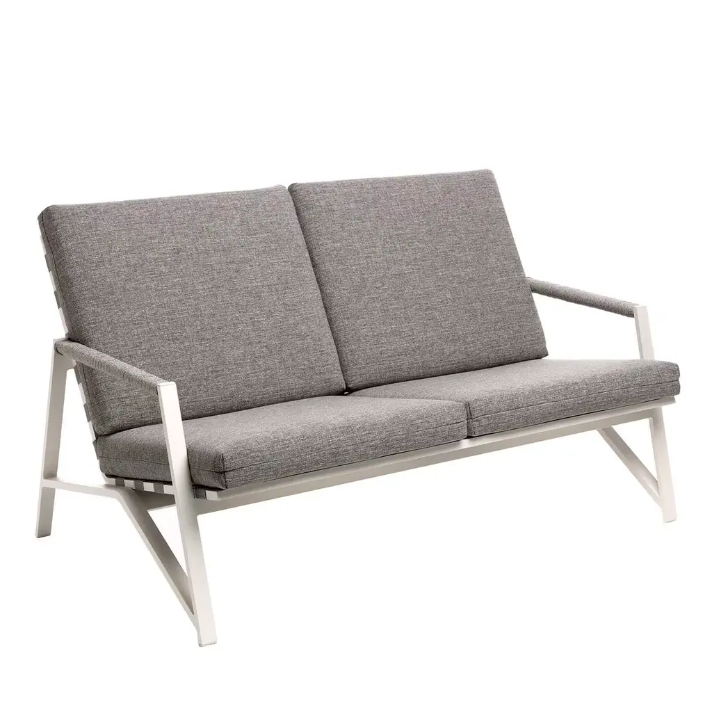 Ribbons Cream sofa by MOWEEDimensions: D83 x W160 x H81 cmMaterial: Aluminum, UpholsteryWeight: 32 kgAlso available in different colors and finishes. An unmistakable collection for its beauty and robustness. A tribute to the Valencian manufacturing tradition as a challenge to innovation, making it sustainable and durable. A collection with details that make it unique. We discover its most representative side, Ribbons. Engineering and tradition come together, thus achieving a collection with its own character.Möwee is part of the work, effort and commitment of Gaviota, a leading company in the outdoor sector. It was set up as an independent venture to broaden horizons in the outdoor furniture world, with its own distinctive character and way of doing things. Freshness, simplicity, quality and design are at the heart of its DNA.