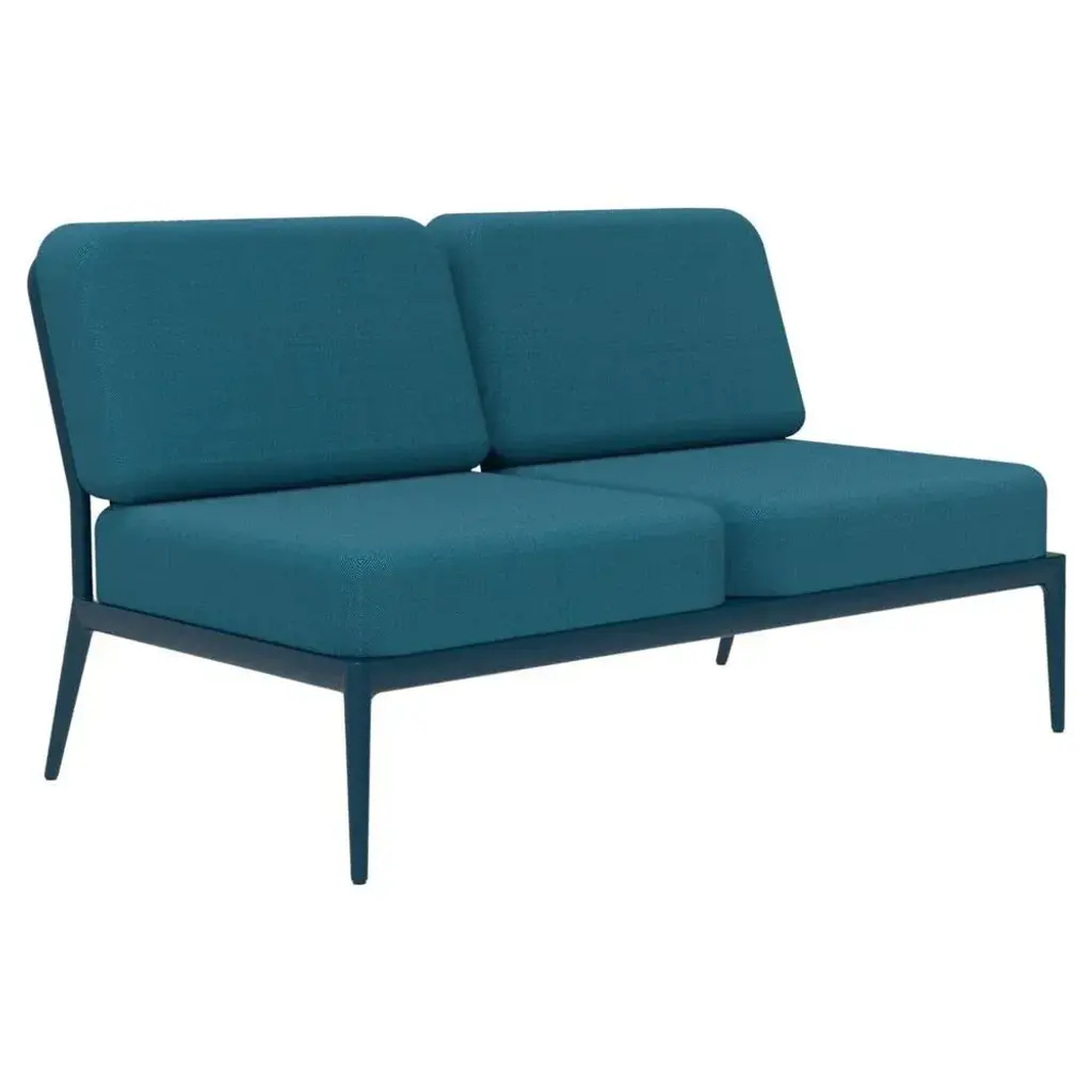 Ribbons navy double central modular sofa by mowee dimensions: d83 x w136 x h81 cm material: aluminium, and upholstery. Weight: 27 kg. An unmistakable collection for its beauty and robustness. A tribute to the valencian manufacturing tradition as a challenge to innovation, making it sustainable and durable. A collection with details that make it unique. We discover its most representative side, ribbons. Engineering and tradition come together, thus achieving a collection with its own character.