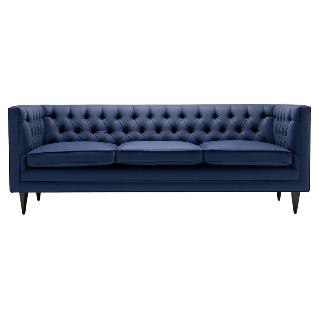 Rich Cushion is a sofa in stress-resistant polyurethane foam in varied densities and polyester fiber on hardwood frame. Front feet of sofa and small armchair are leather or fabric covered beech; back foot, fixed to the frame, is beech. Glides are burnished steel. Chair legs are beech. Version with cushions in polyurethane foam and polyester fibre (code RI0) button-tufted back available. Available in leather or fabric. Rich collection covers are not removable, with the exception of the cushions of RI0 version.
