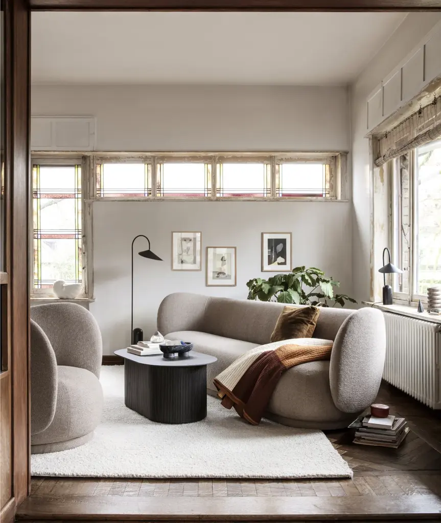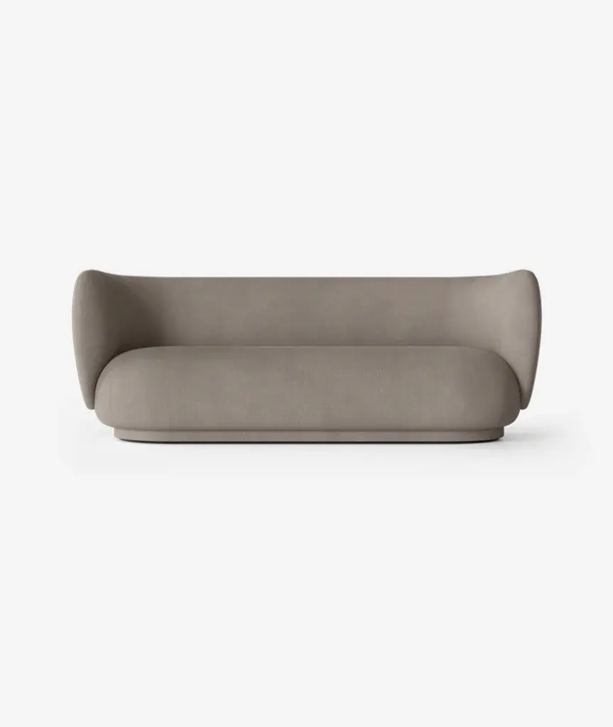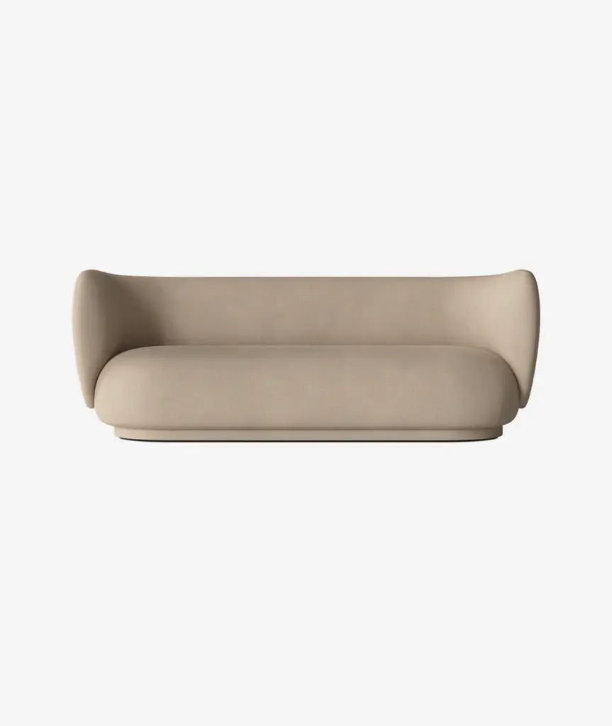 The Rico series welcomes curves and volumes into a classic design defined by soft lines and an embracing expression. Contrasting the sturdiness of the three-seater’s frame, the sofa has an upholstery of timeless, yet easeful bouclé fabric, which is woven of uneven yarn to attain the rich, loopy texture of the surface. The curvaceous nature of the series adds a modern union of comfort and elegance to any room and makes you feel drawn into its motherly embrace. This item is part of our Made to Order customization concept. The upholstery for this item can be selected from a range of high-quality fabrics in different colors and patterns to create your custom piece of furniture.