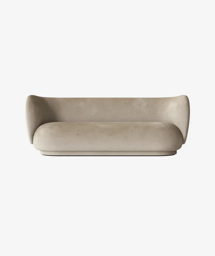 The Rico series welcomes curves and volumes into a classic design defined by soft lines and an embracing expression. Contrasting the sturdiness of the three-seater’s frame, the sofa has an upholstery of timeless, yet easeful bouclé fabric, which is woven of uneven yarn to attain the rich, loopy texture of the surface. The curvaceous nature of the series adds a modern union of comfort and elegance to any room and makes you feel drawn into its motherly embrace. This item is part of our Made to Order customization concept. The upholstery for this item can be selected from a range of high-quality fabrics in different colors and patterns to create your custom piece of furniture.