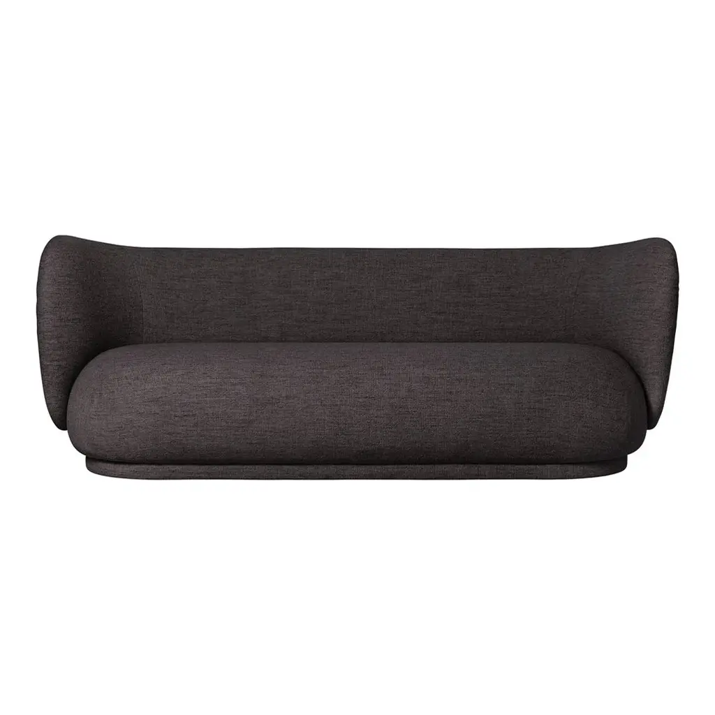 The Rico series welcomes curves and volumes into a classic design defined by soft lines and an embracing expression. Contrasting the sturdiness of the three-seater's frame, the sofa has an upholstery of timeless, yet easeful boucle fabric, which is woven of uneven yarn to attain the rich, loopy texture of the surface. The curvaceous nature of the series adds a modern union of comfort and elegance to any room and makes you feel drawn into its motherly embrace. The brushed item is part of our made to order customization concept. The materials have been handpicked in order to create this custom piece – the only one of its kind. Please note it cannot be exchanged or returned.