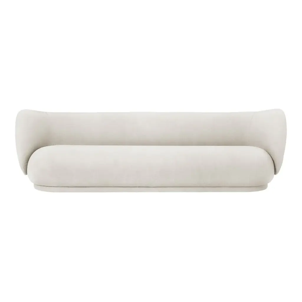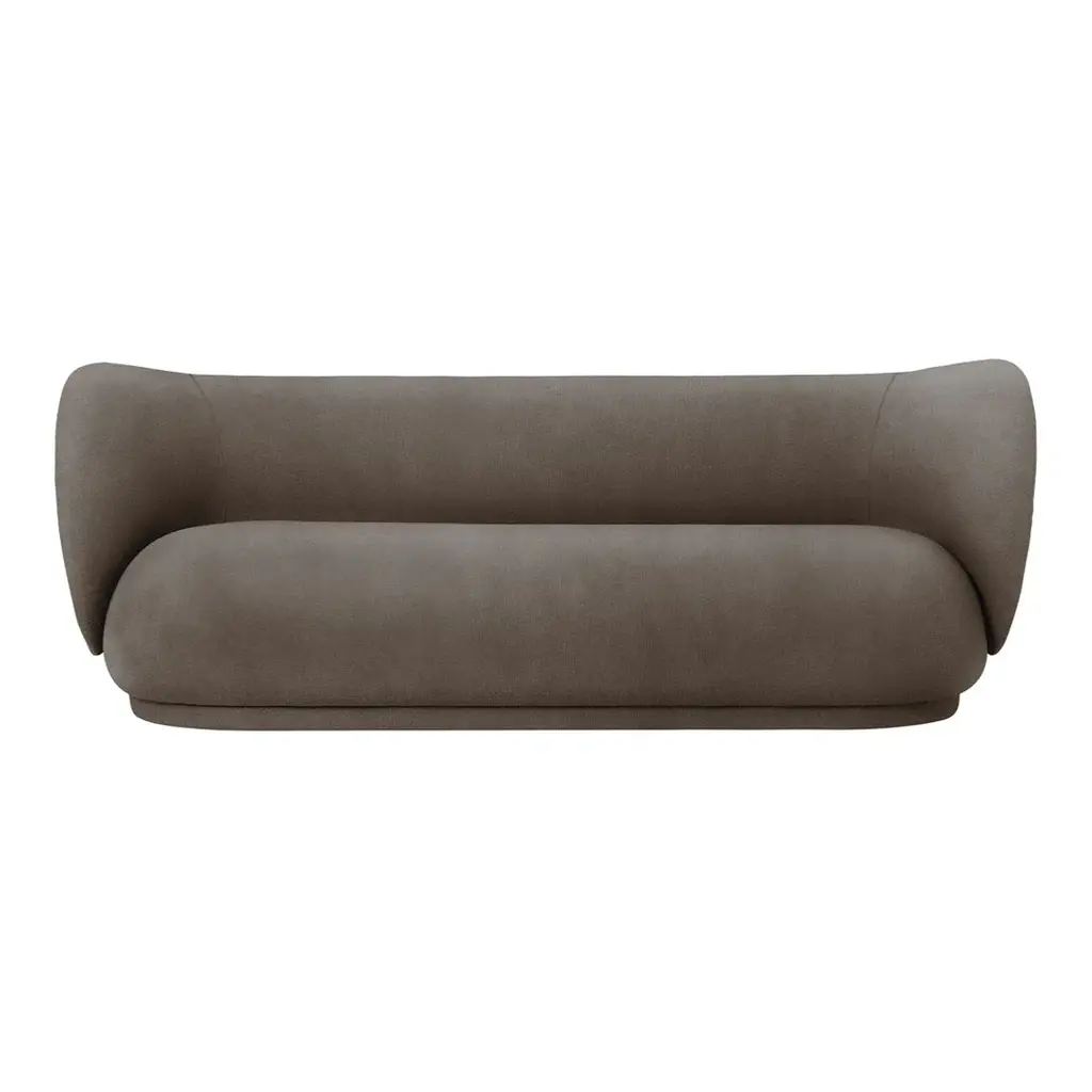 The Rico series welcomes curves and volumes into a classic design defined by soft lines and an embracing expression. Contrasting the sturdiness of the three-seater's frame, the sofa has an upholstery of timeless, yet easeful boucle fabric, which is woven of uneven yarn to attain the rich, loopy texture of the surface. The curvaceous nature of the series adds a modern union of comfort and elegance to any room and makes you feel drawn into its motherly embrace. The brushed item is part of our made to order customization concept. The materials have been handpicked in order to create this custom piece – the only one of its kind. Please note it cannot be exchanged or returned.