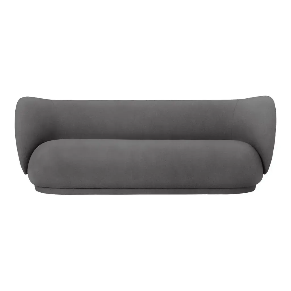 The Rico series welcomes curves and volumes into a classic design defined by soft lines and an embracing expression. Contrasting the sturdiness of the three-seater's frame, the sofa has an upholstery of timeless, yet easeful boucle fabric, which is woven of uneven yarn to attain the rich, loopy texture of the surface. The curvaceous nature of the series adds a modern union of comfort and elegance to any room and makes you feel drawn into its motherly embrace. The brushed item is part of our made to order customization concept. The materials have been handpicked in order to create this custom piece – the only one of its kind. Please note it cannot be exchanged or returned.