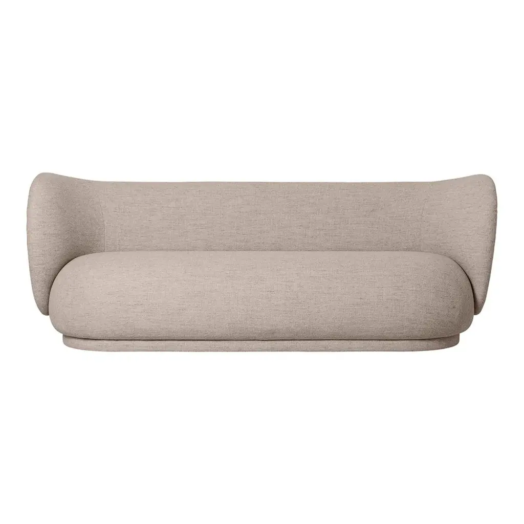 The Rico series welcomes curves and volumes into a classic design defined by soft lines and an embracing expression. Contrasting the sturdiness of the three-seater's frame, the sofa has an upholstery of timeless, yet easeful boucle fabric, which is woven of uneven yarn to attain the rich, loopy texture of the surface. The curvaceous nature of the series adds a modern union of comfort and elegance to any room and makes you feel drawn into its motherly embrace. The brushed item is part of our made to order customization concept. The materials have been handpicked in order to create this custom piece – the only one of its kind. Please note it cannot be exchanged or returned.