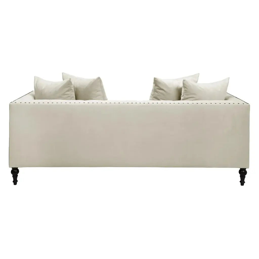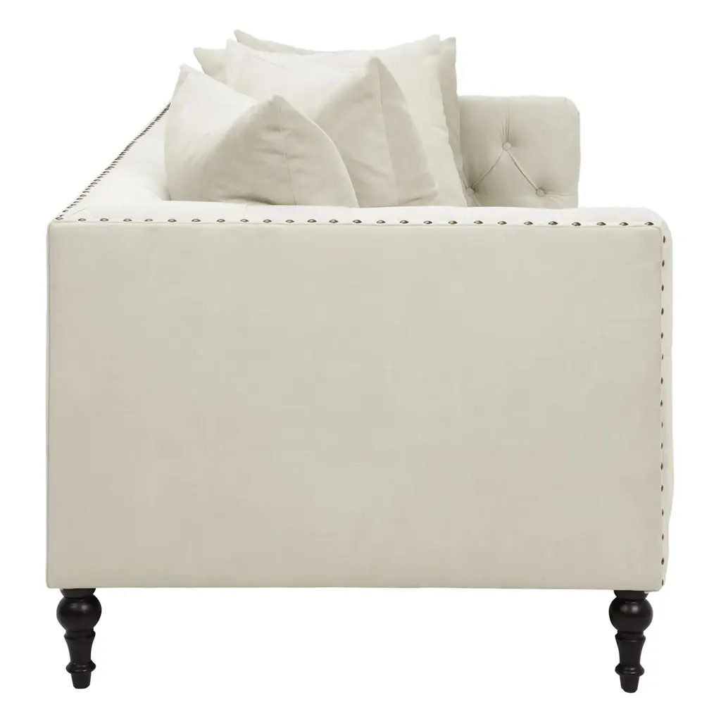 With clean-lined framework, lavish diamond tufting, and graceful turned legs, the pieces in our Roberto Collection deliver stately elegance to any interior. Kiln-dried hardwood frames and plush foam-and-fiber fill ensure long-lasting comfort and support, while hand-applied nailheads along tonal French tape trim finishes the look in high style. Shown in Bella Velvet Pearl with antique brass nailheads.Exclusive to Z Gallerie.Available in over 15 fabrics. Custom Orders: Custom Furniture is manufactured especially for you, which is why we do not accept cancellations, exchanges, or returns.