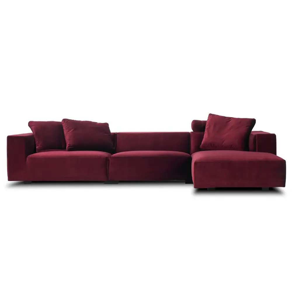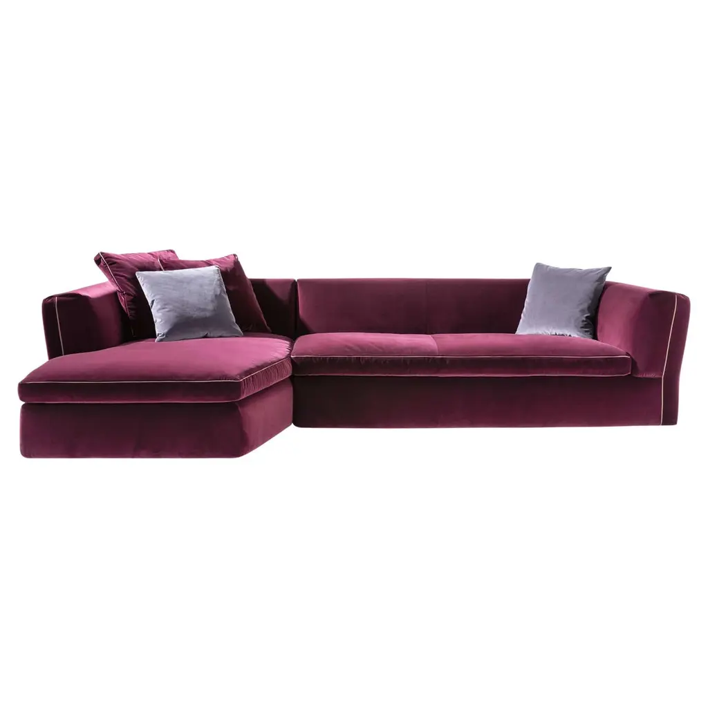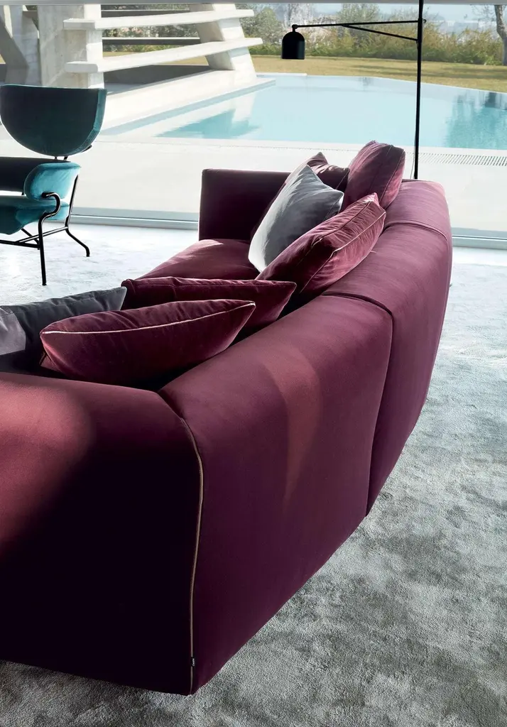 Prices vary dependent on the chosen model/material/color.Sofa designed by Rodolfo Dordini in 2019. Manufactured by Cassina in Italy. A sophisticated haute couture design featuring elegant details reminiscent of classic fine tailoring. Prices vary dependent on the size/model and material of the sofa. The price given applies to the burgundy colored sofa in the 1st picture.