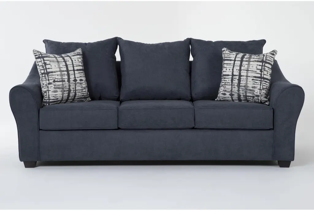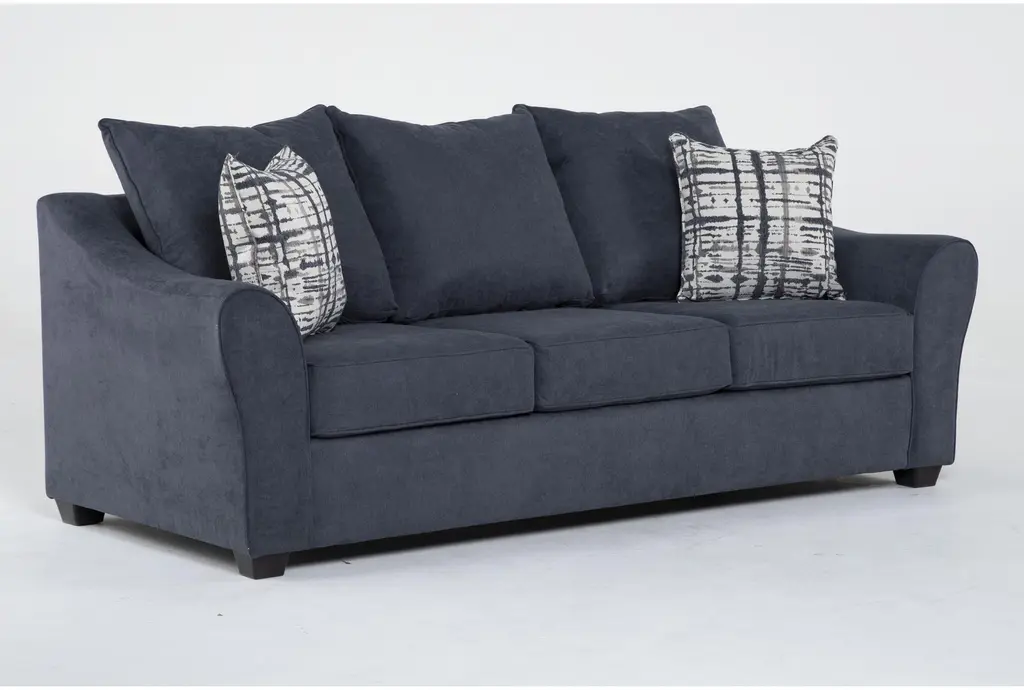 Bring casual modern style to your living room with our Rodrigo sofa, which offers easy, inviting comfort at an incredible value. Contemporary curves define the breezy silhouette, which is decked in an alluring slate blue palette that vibes well with any interior. Made exclusively by Living Spaces, it boasts a sturdy frame, supportive suspension and cozy cushions, perfect for lounging.