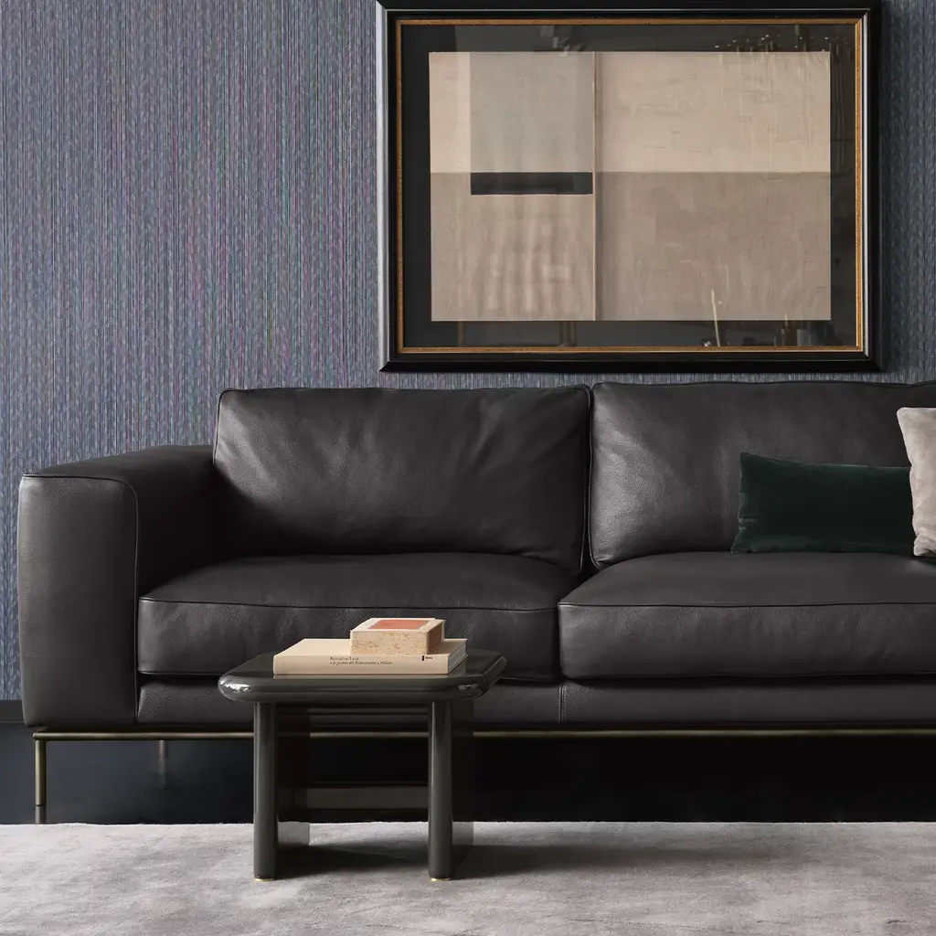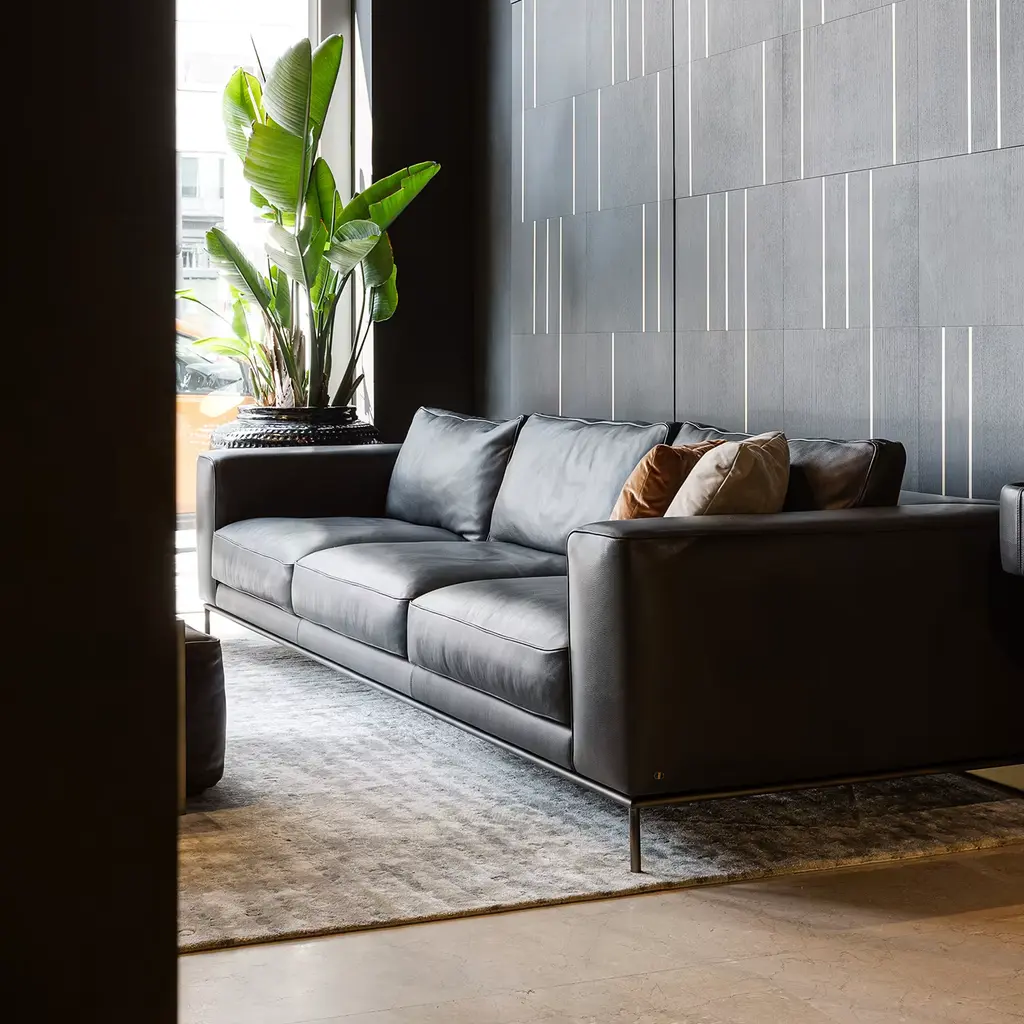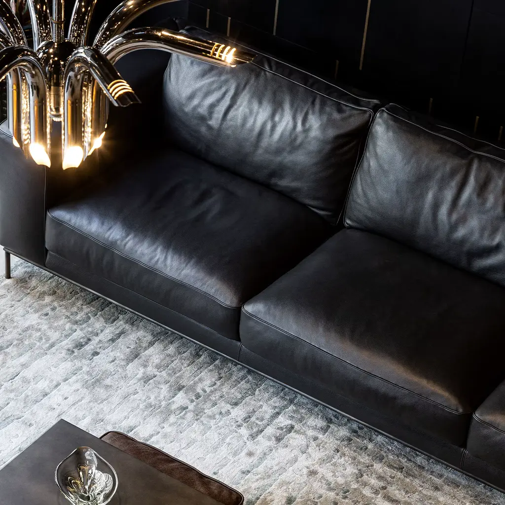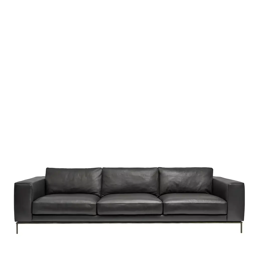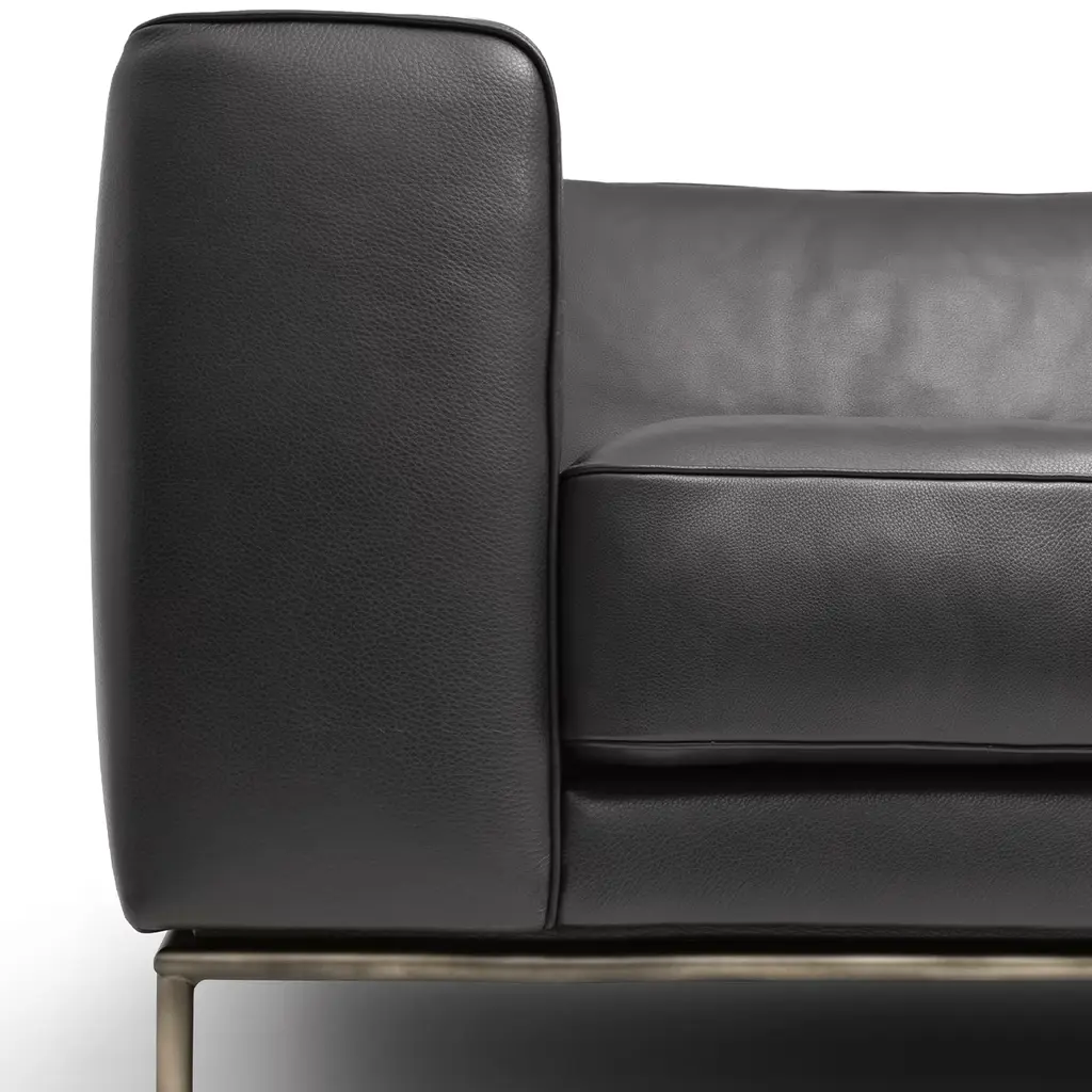 Base structure in dual-layered poplar plywood reinforced with the metal profile. It is gummed with two densities: 30% for the external parts and 70% for the upper parts to improve the support of the upholstery. Back cushion interior in a down-proof cotton casing stuffed with a combination of acrylic and down filing. Seat cushions padded with expanded polyurethane double density foam. Base in powder-coated metal anchored to the loadbearing structure of the frame. Removable cushion covers.