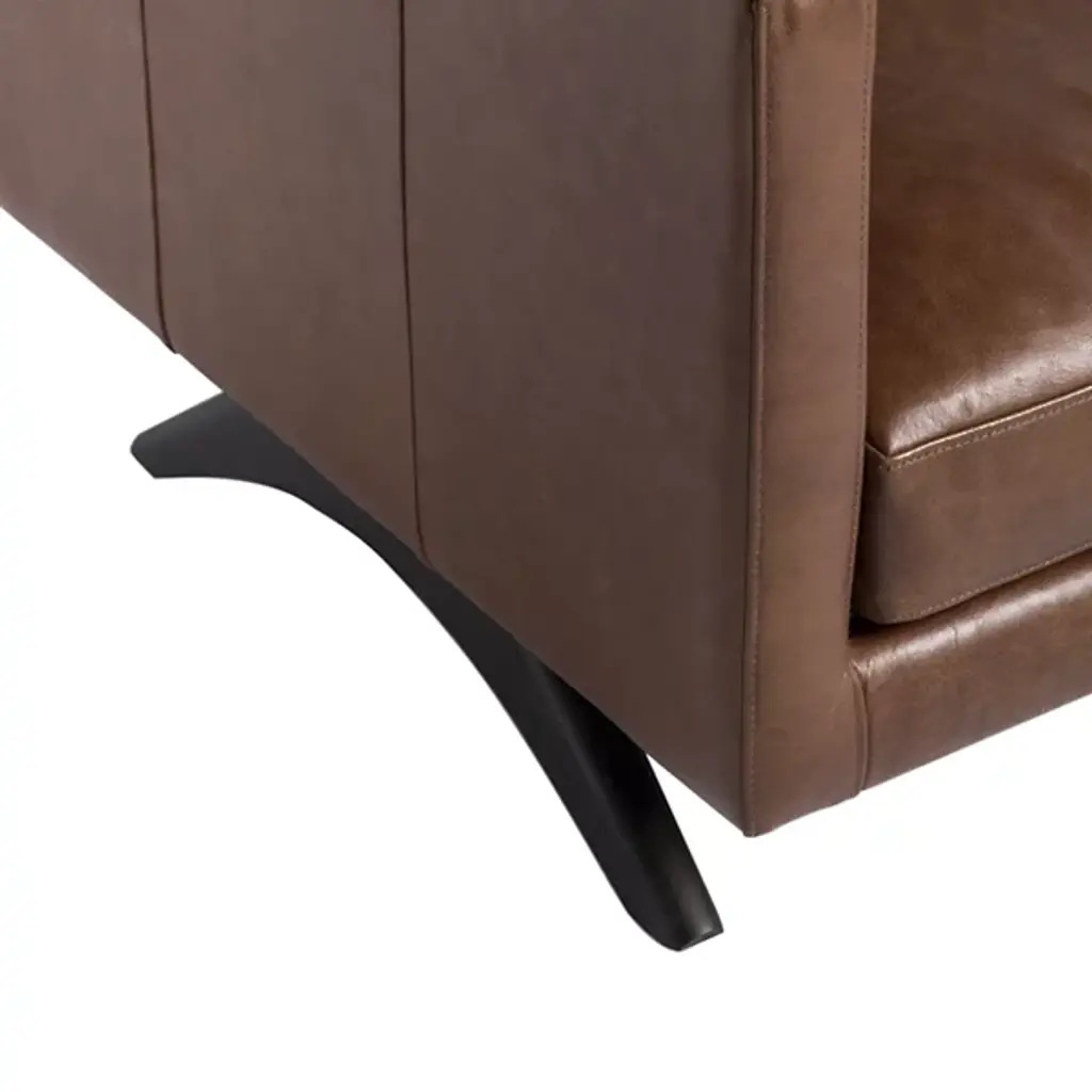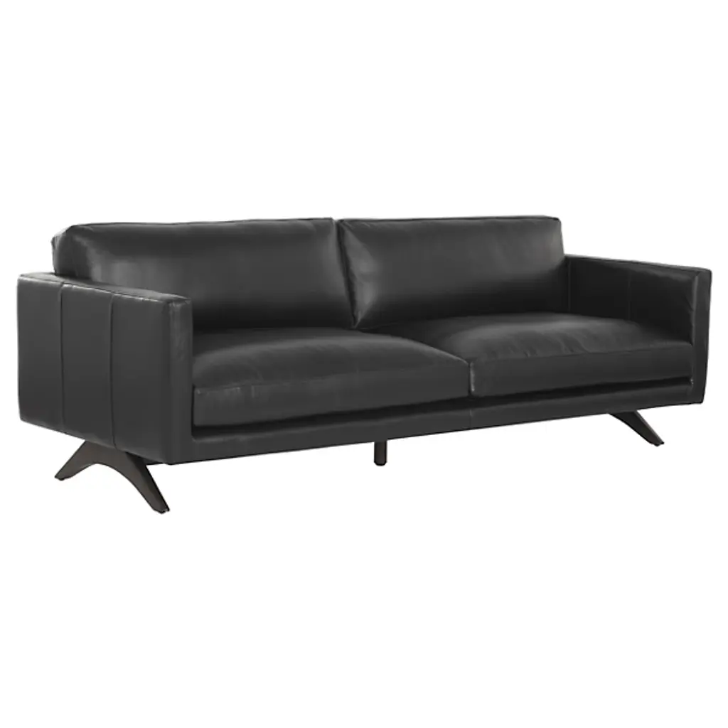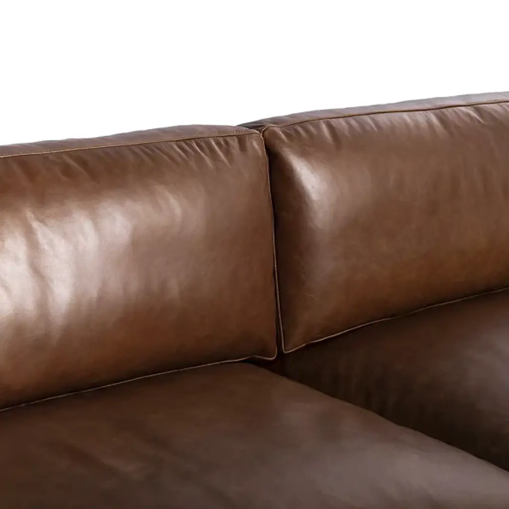 The Rogers Sofa from Sunpan embodies refined power through its commanding presence and mid-century aesthetic. The wide, welcoming frame showcases premium top-grain leather upholstery that tells its own story through naturally occurring markings and subtle variations. Beneath its sophisticated exterior lies a masterfully engineered foundation of high-resiliency foam and responsive springs, while angled solid oak legs provide elevated balance. This distinguished sofa transforms any setting into a statement of timeless elegance.
