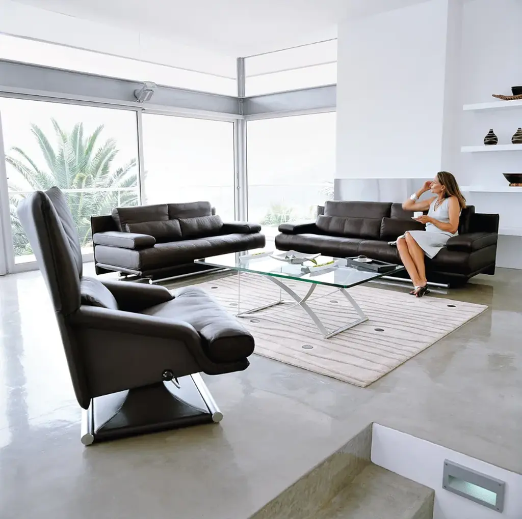 Like scarcely any other sofa range, Rolf Benz 6500 is an elegant design statement and enjoys iconic status in the world’s living rooms. Very probably because the two height-adjustable backrests make the sofa so functional. The excellent upholstery guarantees you an extraordinary level of comfort while the lower support cushions take the strain off your back.You can choose from 2 different seating heights, different sofa widths and legs in matt chrome plated or polished chrome plated. The range is complemented by high-backed armchairs and footstools.• Downy-soft cushions with a filling of foam rods and polyester fibers• Back made of polyurethane foam, covered with a mat to achieve a down-like effect, which has chambers worked into it and is filled with foam rods and polyester fibers• Additional high-back comfort through adjustable back cushion• Body covered in polyurethane foam• Seat in polyurethane foam, built up in coordinated layers varying in height and firmness covered with a downy-soft mat worked into ticking chambers and filled with foam rods and polyester fibers• Coil spring unit• Wooden inner frame• For leg finish, please refer to the information page• Seat height: 39 cm or 41 cmThe high-grade materials used are tested in accordance with DIN and RAL directives and subject to long-term testing. The foam materials used in our upholstered furniture are produced free of fluorochlorinated hydrocarbons.Like scarcely any other sofa range, Rolf Benz 6500 is an elegant design statement and enjoys iconic status in the world’s living rooms. Very probably because the two height-adjustable backrests make the sofa so functional. The excellent upholstery guarantees you an extraordinary level of comfort while the lower support cushions take the strain off your back.You can choose from 2 different seating heights, different sofa widths and legs in matt chrome plated or polished chrome plated. The range is complemented by high-backed armchairs and footstools.• Downy-soft cushions with a filling of foam rods and polyester fibers• Back made of polyurethane foam, covered with a mat to achieve a down-like effect, which has chambers worked into it and is filled with foam rods and polyester fibers• Additional high-back comfort through adjustable back cushion• Body covered in polyurethane foam• Seat in polyurethane foam, built up in coordinated layers varying in height and firmness covered with a downy-soft mat worked into ticking chambers and filled with foam rods and polyester fibers• Coil spring unit• Wooden inner frameSeat height: 39 cm or 41 cm The high-grade materials used are tested in accordance with DIN and RAL directives and subject to long-term testing. The foam materials used in our upholstered furniture are produced free of fluorochlorinated hydrocarbons.