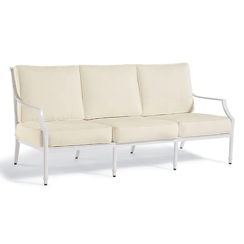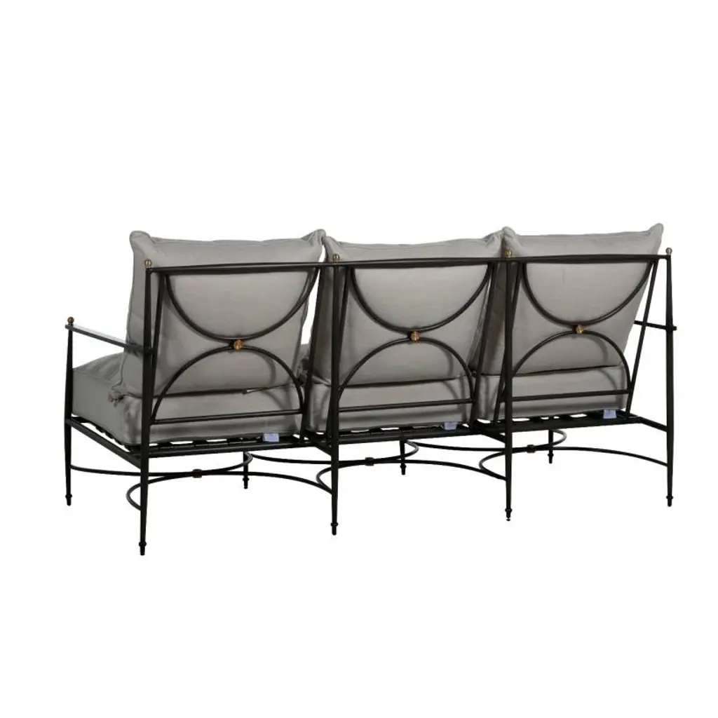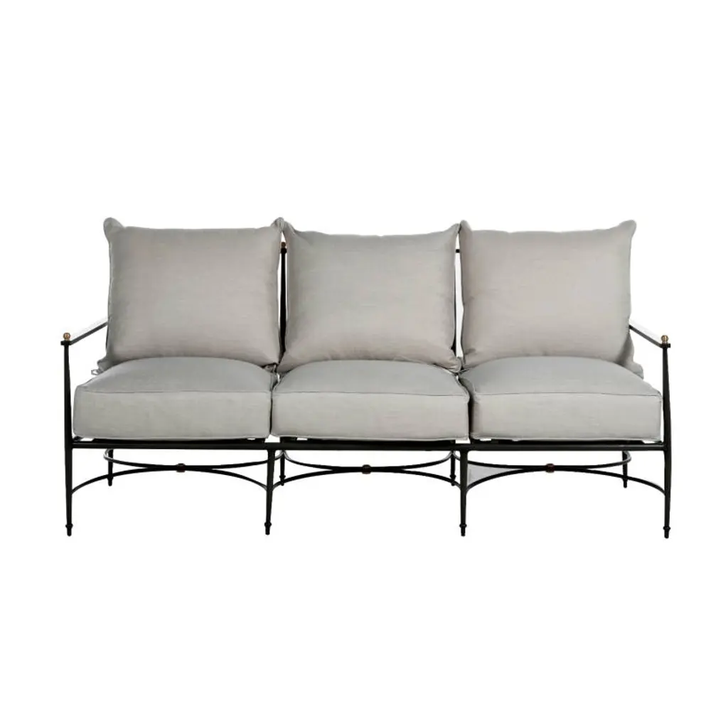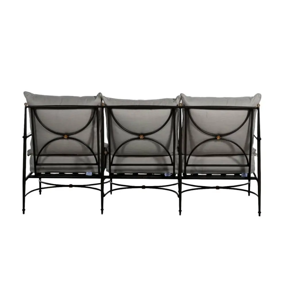 The Roma Sofa is a luxurious embodiment of Italian design, bringing a sense of classic sophistication to any outdoor space. Its frame, meticulously wrought from aluminum and adorned with subtle brass accents, marries durability with an airy, graceful design. The plush cushions provide sumptuous comfort, perfect for leisurely days spent under the sky or evenings of elegant entertaining. With its charming old-world allure and modern resilience, this sofa is a centerpiece that beckons one to sit back, relax, and savor the art of outdoor living.