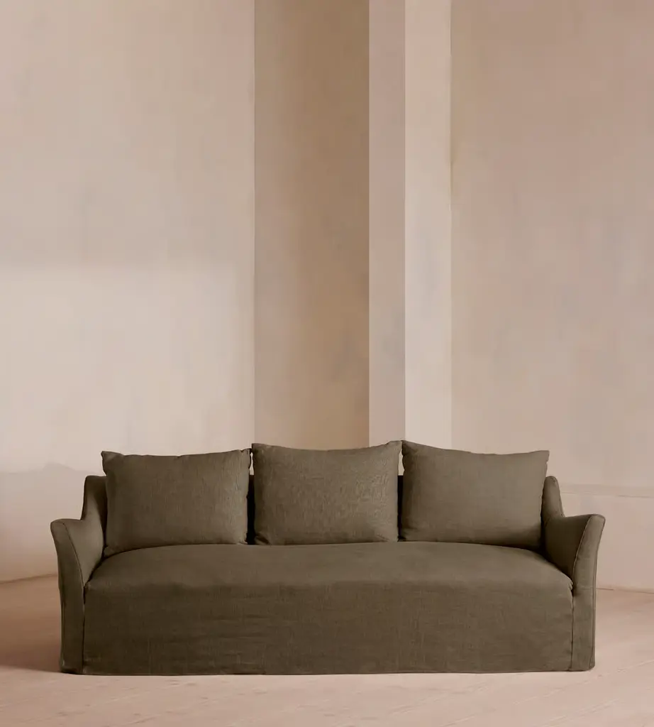 Taking its cues from the open-plan barn spaces at Soho Farmhouse, our Roma sofa features a wide seat and flared arms - great for relaxed lounging and socialising with friends. Designed with a tailored linen slip cover, partner with the Roma loveseat and ottoman to recreate our cosy, country house look.