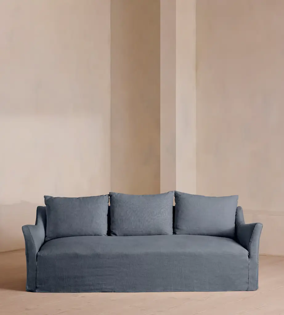 Taking its cues from the open-plan barn spaces at Soho Farmhouse, our Roma sofa features a wide seat and flared arms - great for relaxed lounging and socialising with friends. Designed with a tailored linen slip cover, partner with the Roma loveseat and ottoman to recreate our cosy, country house look.